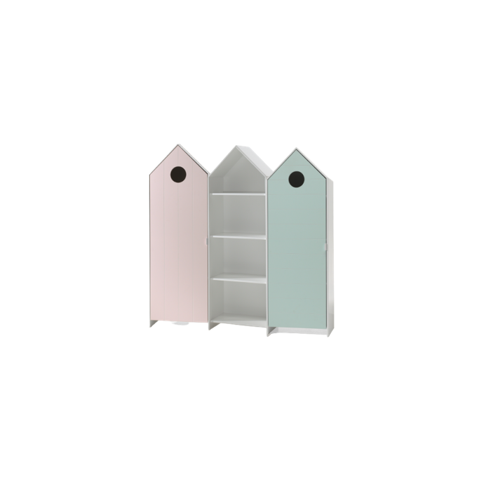 The CASAMI beach house cupboards will add colour to your kids bedroom. They are also compatible with other items from our collections. The closets with doors in pastel pink and mint green have 3 shelves and 1 hanging rail. The open closet in white has also 3 shelves. There's plenty of storage space to keep your clothes folded our to display your books and toys.