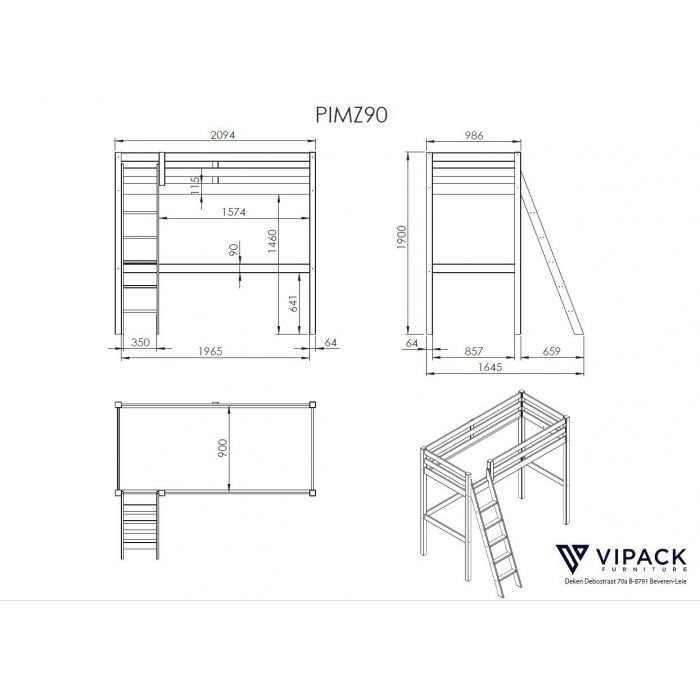 This PINO combination consists of the white PINO mezzanine 90 x 200 cm