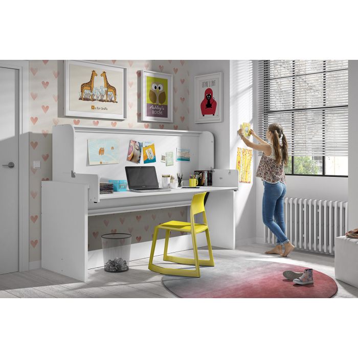 This DENVER 2 in 1 bed (90x200) in white can be easily transformed into a spacious desk. A great space-saving solution!