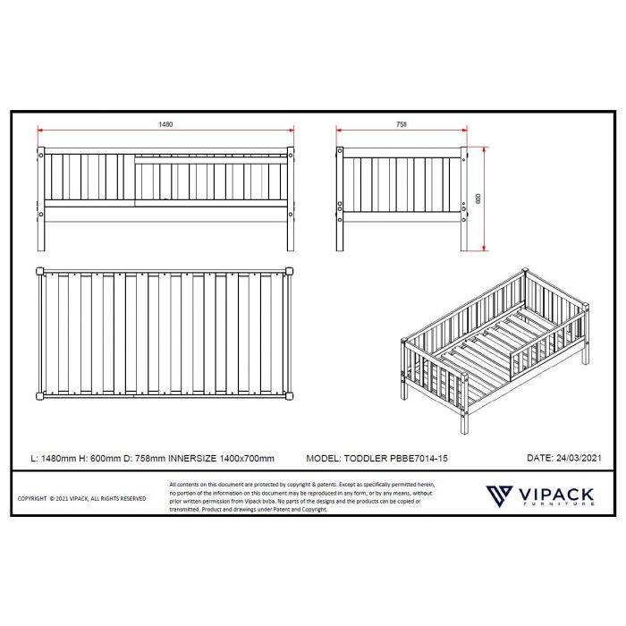 Informations sur le produit "Toddler bed 70 - 70x140cm grey *"