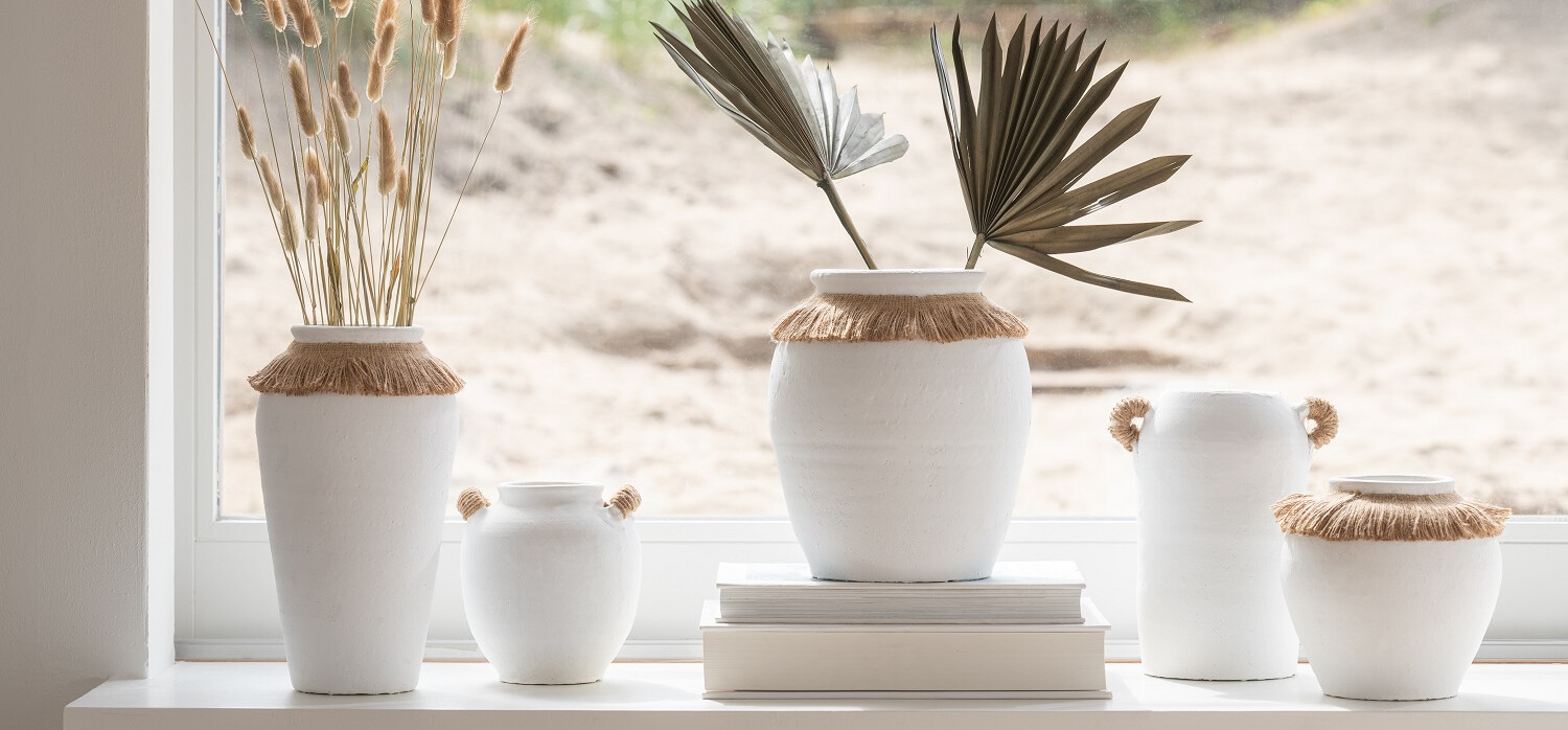 Die richtige Vase oder der richtige Blumentopf kann einen Raum durch Textur, Form und Persönlichkeit verwandeln. Kombinieren Sie sie mit unseren naturgetreuen Kunstpflanzen und -blumen für einen frischen, natürlichen Look – ganz ohne Gießen. Ob Sie auffällige Stücke oder dezente, zeitlose Designs bevorzugen, unsere Kollektion bringt mühelos Grün und Stil in jeden Raum.