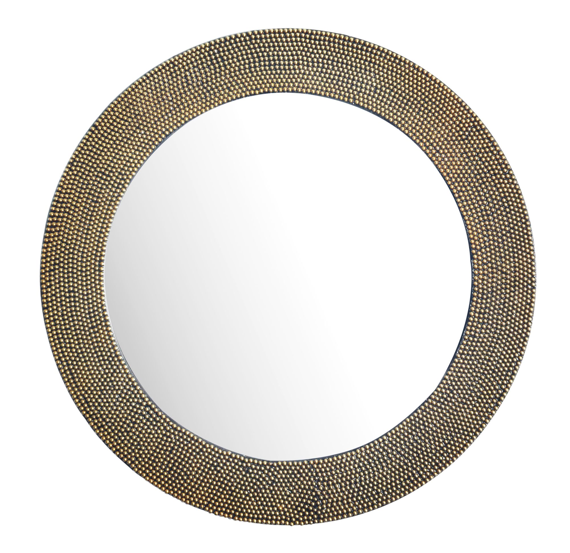 60 cm Runder Wandspiegel Goldfarben Metall Aluminium Perlenrahmen Design | Modern