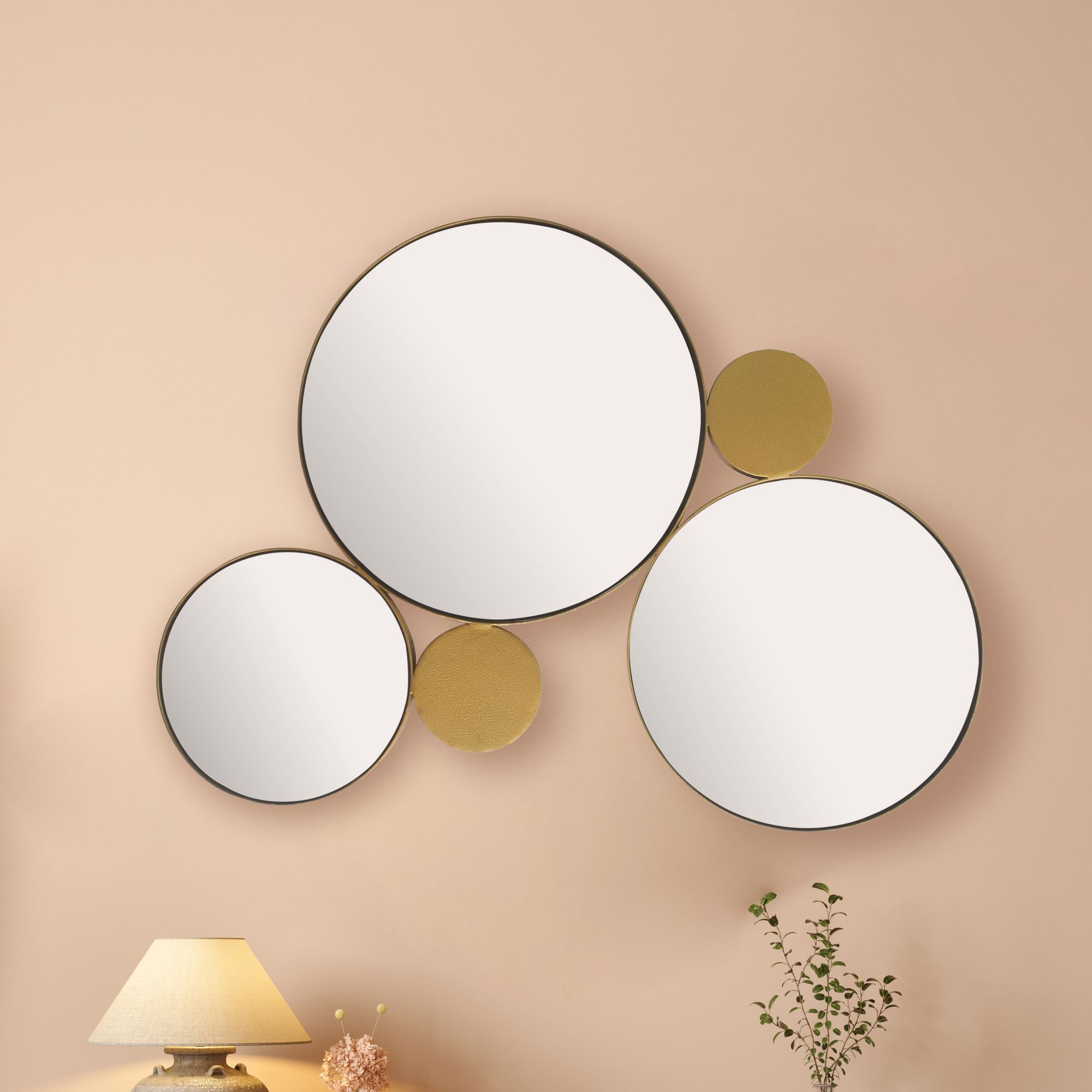Miroir mural métallique doré | 80x60 cm | Trois miroirs ronds avec cercles décoratifs
