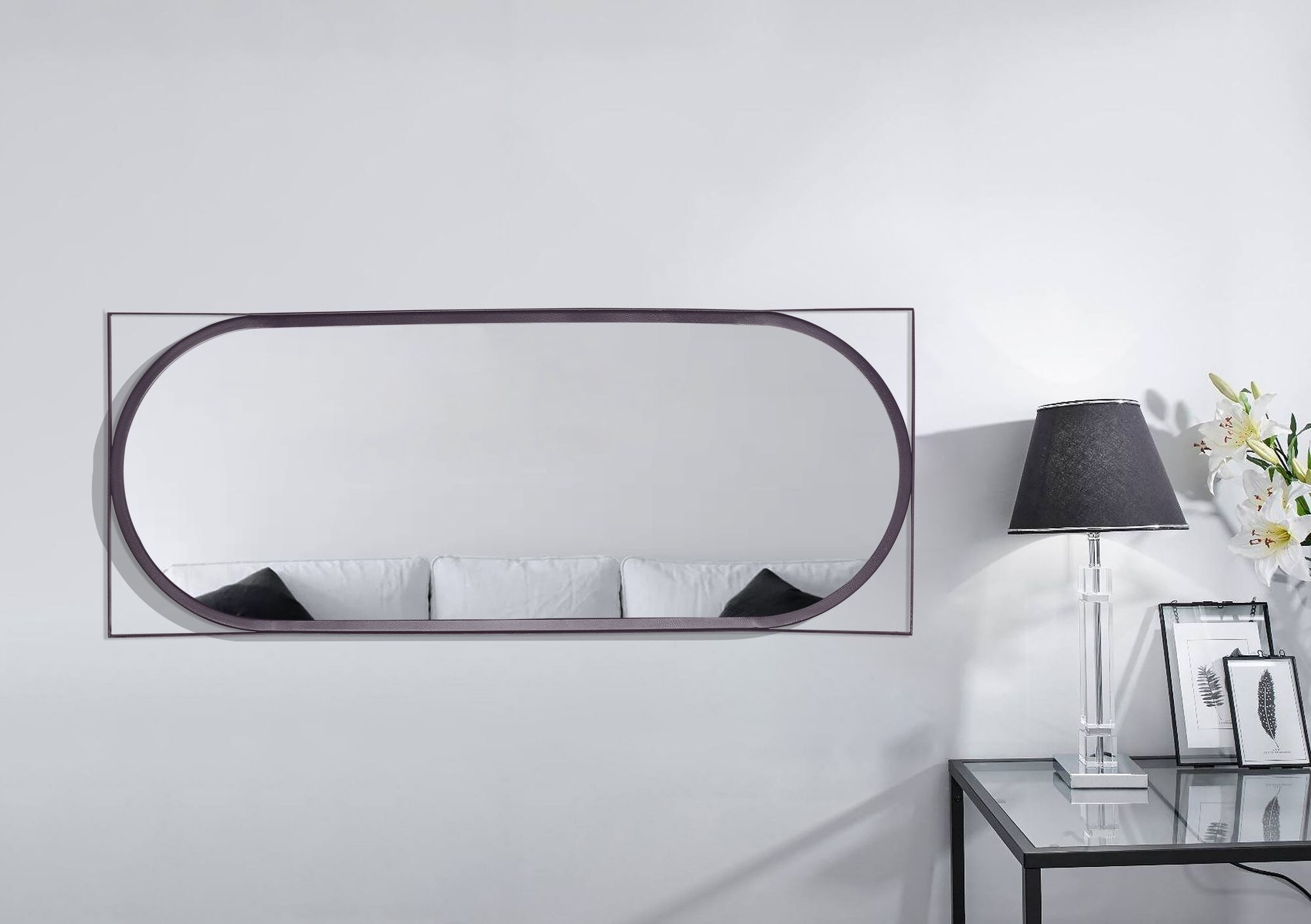 Miroir mural rectangle 37x91 cm | Cadre noir en métal | Design moderne en acier