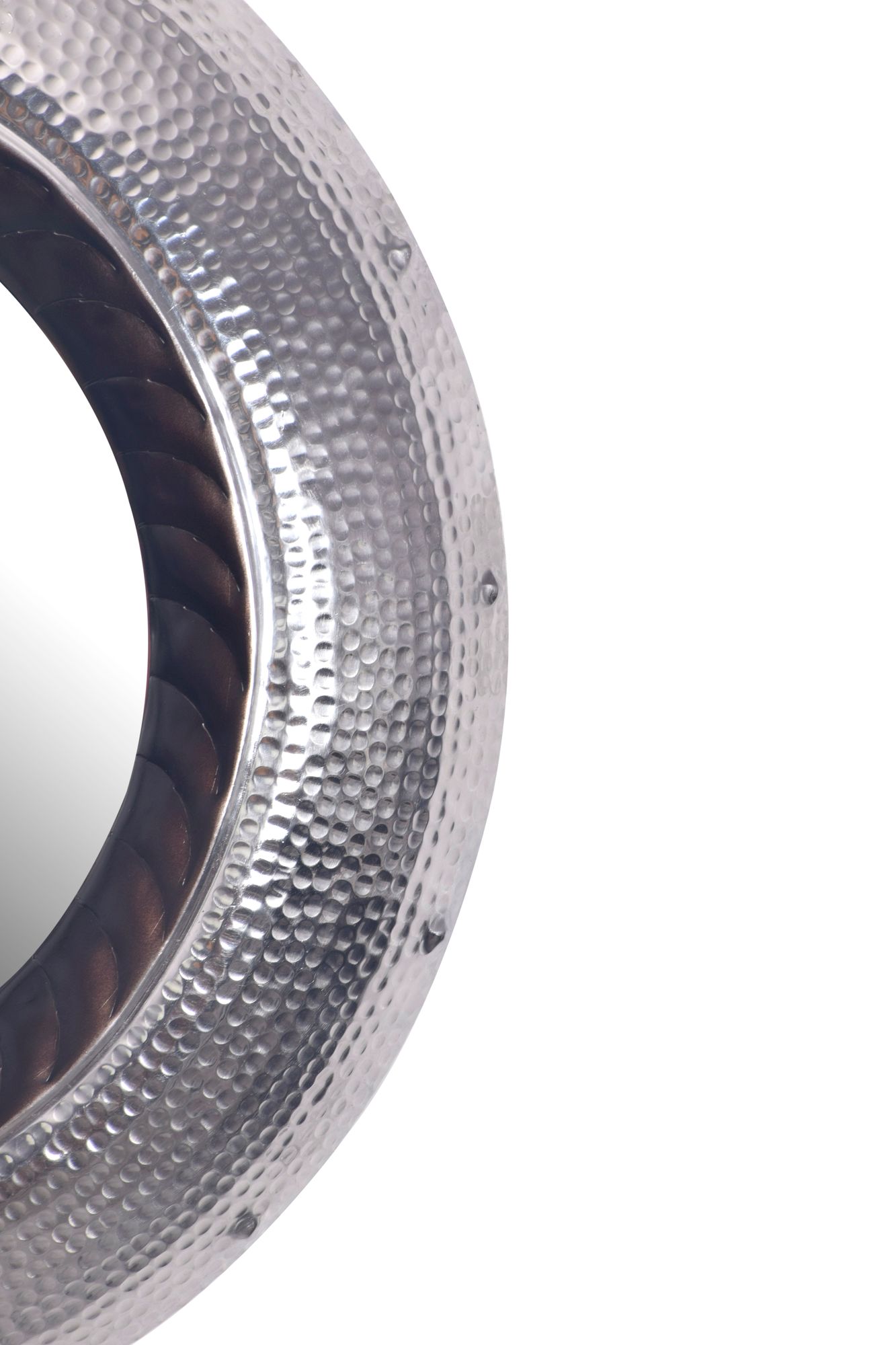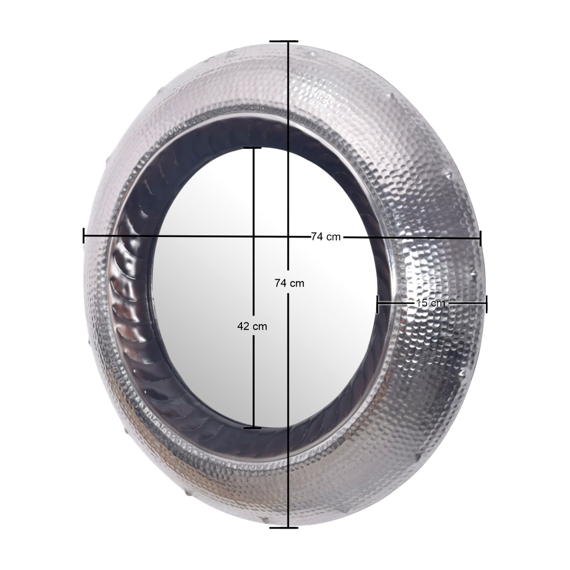 Apportez une touche d'élégance à votre intérieur avec ce miroir mural rond en verre de haute qualité, encadré d'un aluminium argenté texturé hammerschlag. Sa taille de 74 x 74 cm et son design unique s'intègrent parfaitement dans tous types de pièces, du couloir au salon.