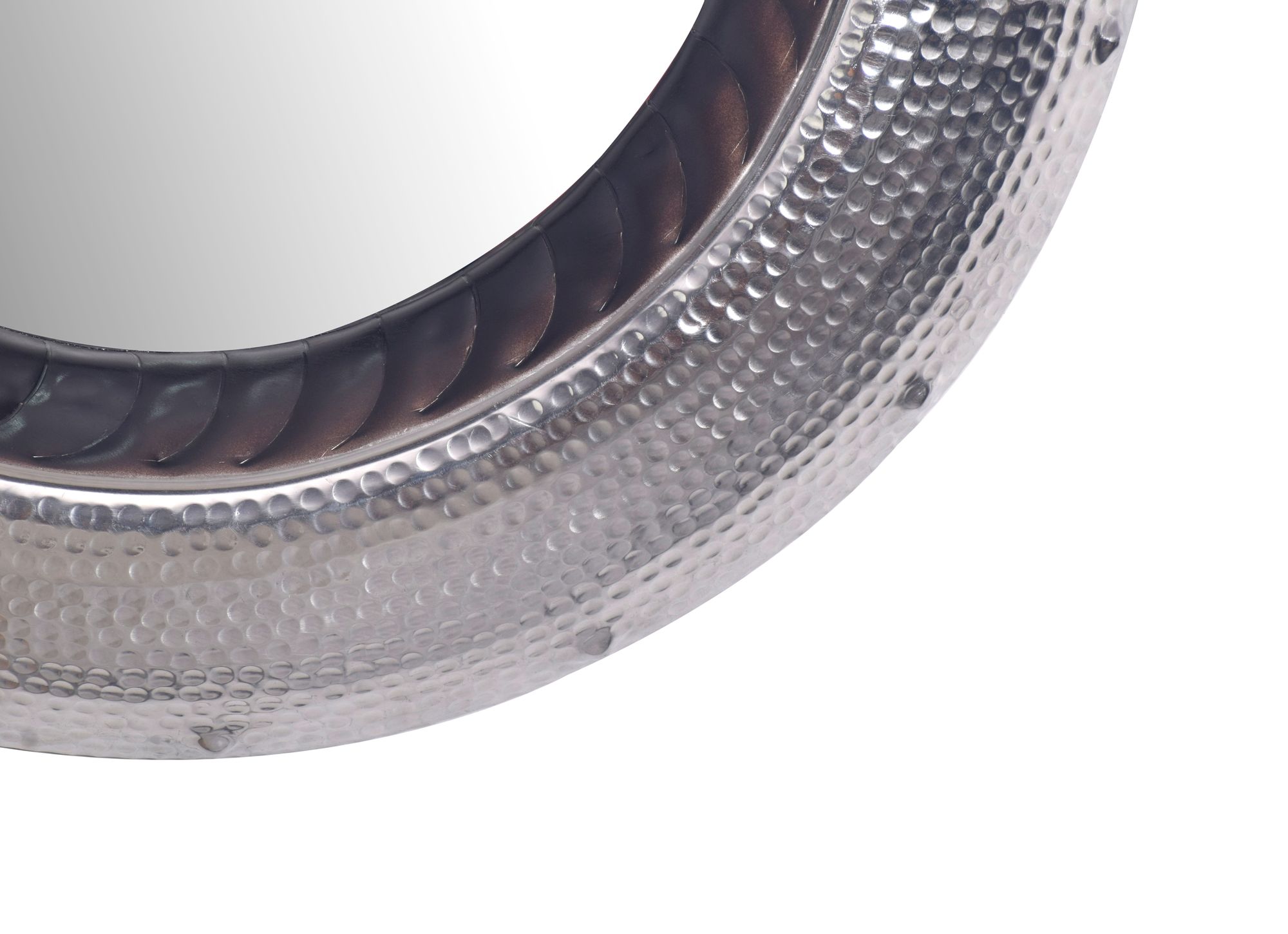 Miroir mural rond en verre et aluminium argenté | 74x74 cm | Cadre texturé hammerschlag