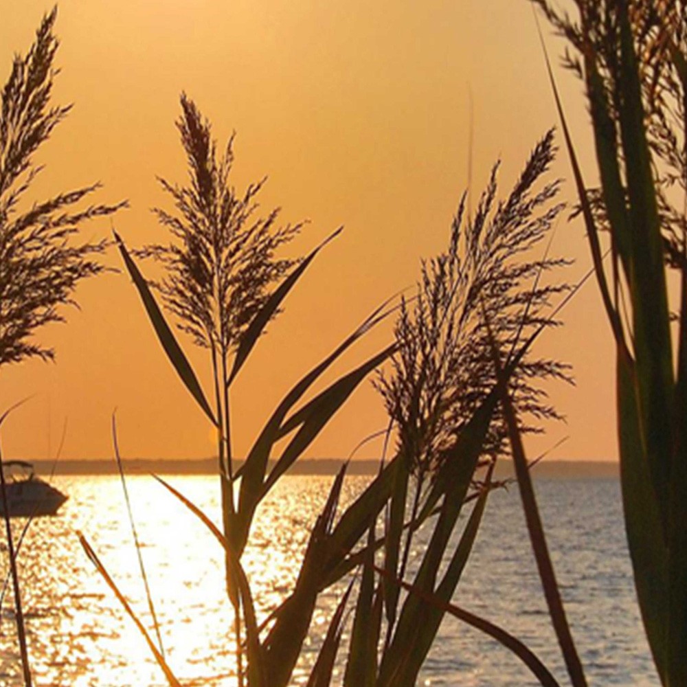 Informations sur le produit "Paravent à deux faces 145 cm fabriqué en mdf et toile avec image coucher de soleil sur le lac"