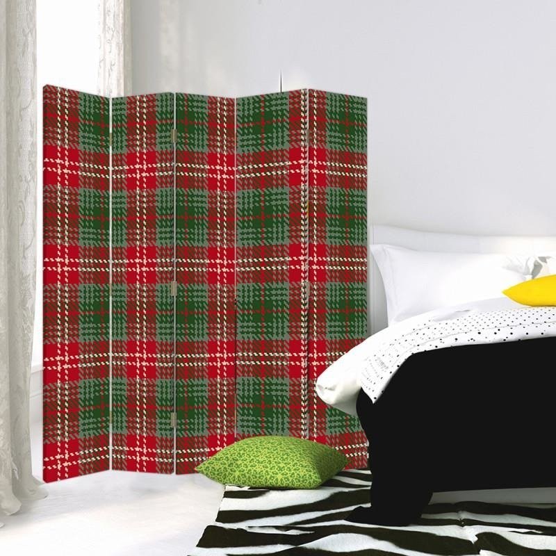 Paravent à deux faces 180 cm fabriqué en mdf et toile avec décor tartan rouge et vert