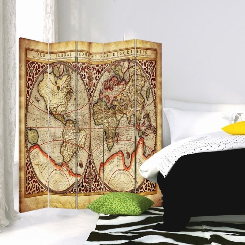 Paravent à deux faces 180 cm fabriqué en mdf et toile avec image d'une carte ancienne