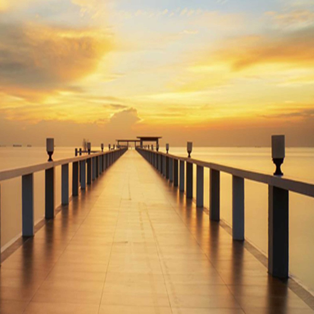 Informations sur le produit "Paravent à deux faces 180 cm fabriqué en mdf et toile avec image de pont au coucher du soleil"