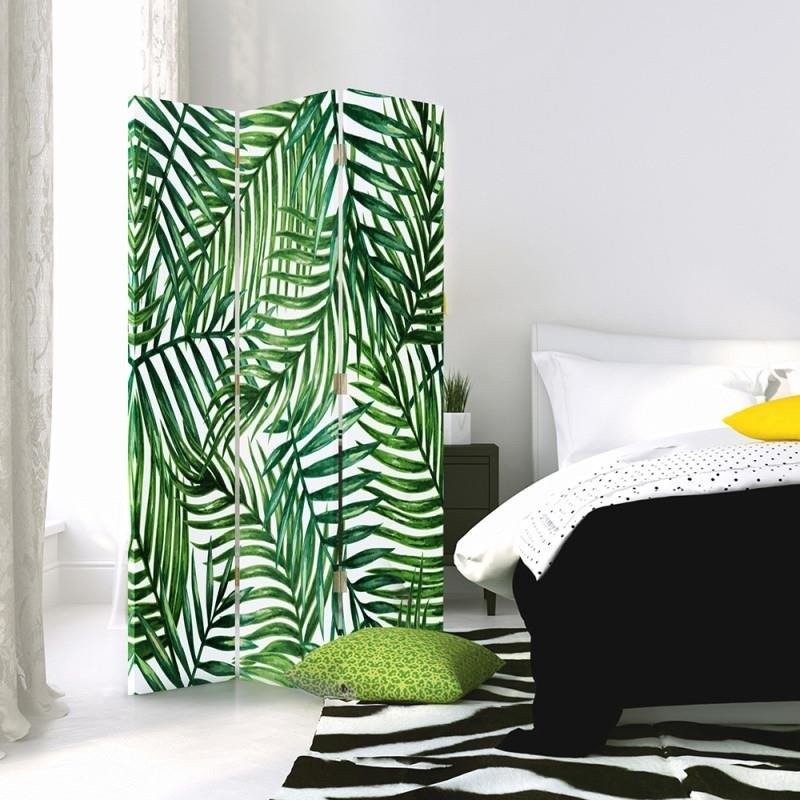 - Paravent avec dessin de feuilles de palmier, composé de 3 parties.