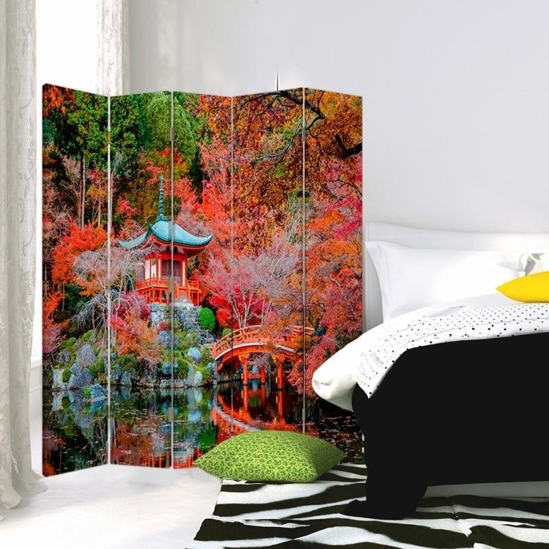 Paravent avec image d'un jardin style japonais fabriqué en mdf et toile