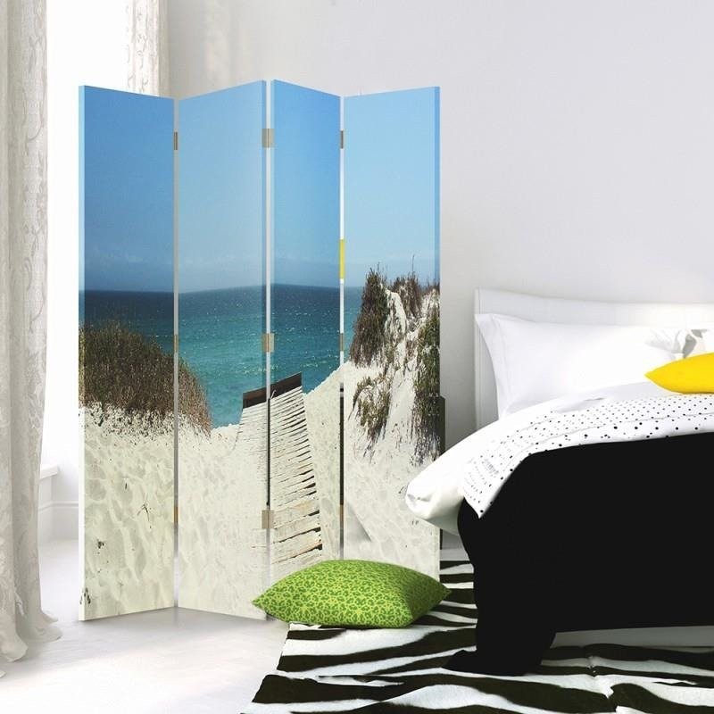 - Paravent avec image de chemin à la plage, composé de 4 parties.
