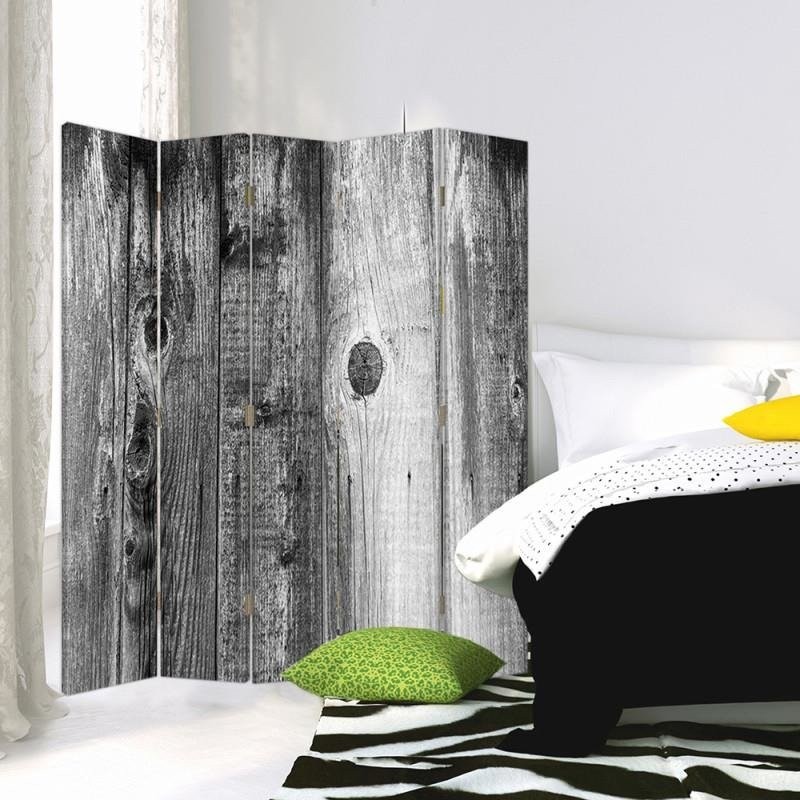- Paravent avec image de panneaux rustiques en bois, composé de 5 parties.