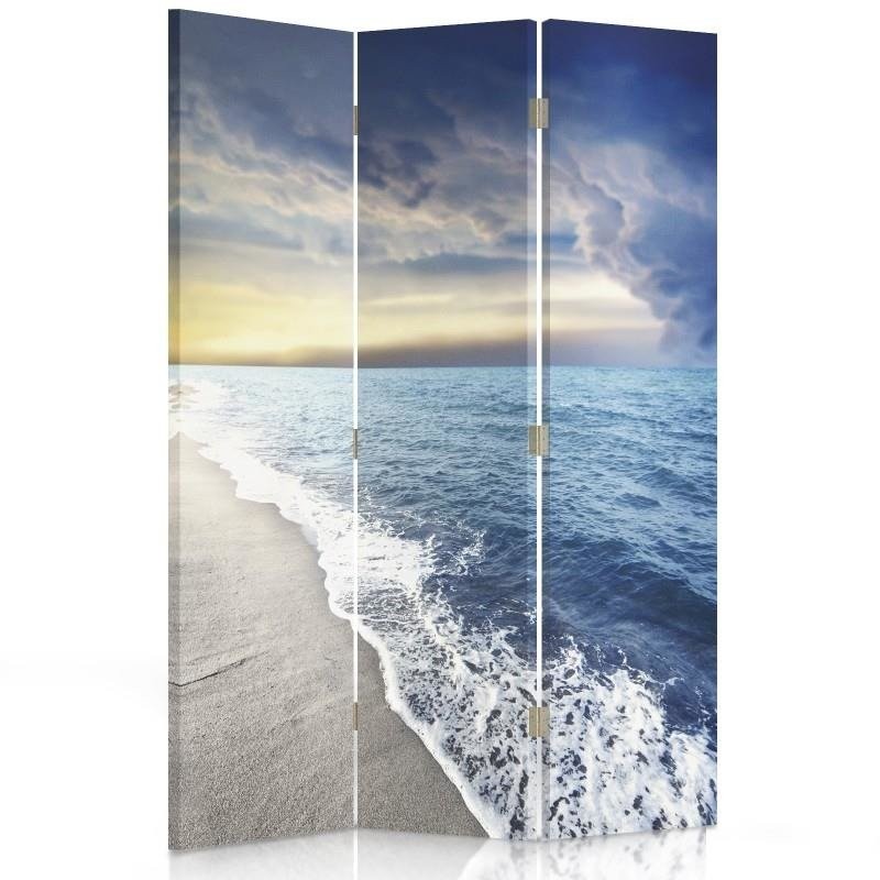 Paravent pliable disposant de trois parties bleu nuages en bord de mer