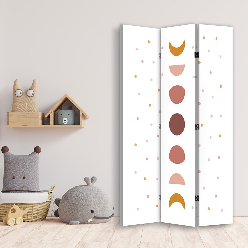 Paravent séparateur d'espaces fabriqué avec toile imprimée et cadre en mdf de la pleine lune à la nouvelle lune