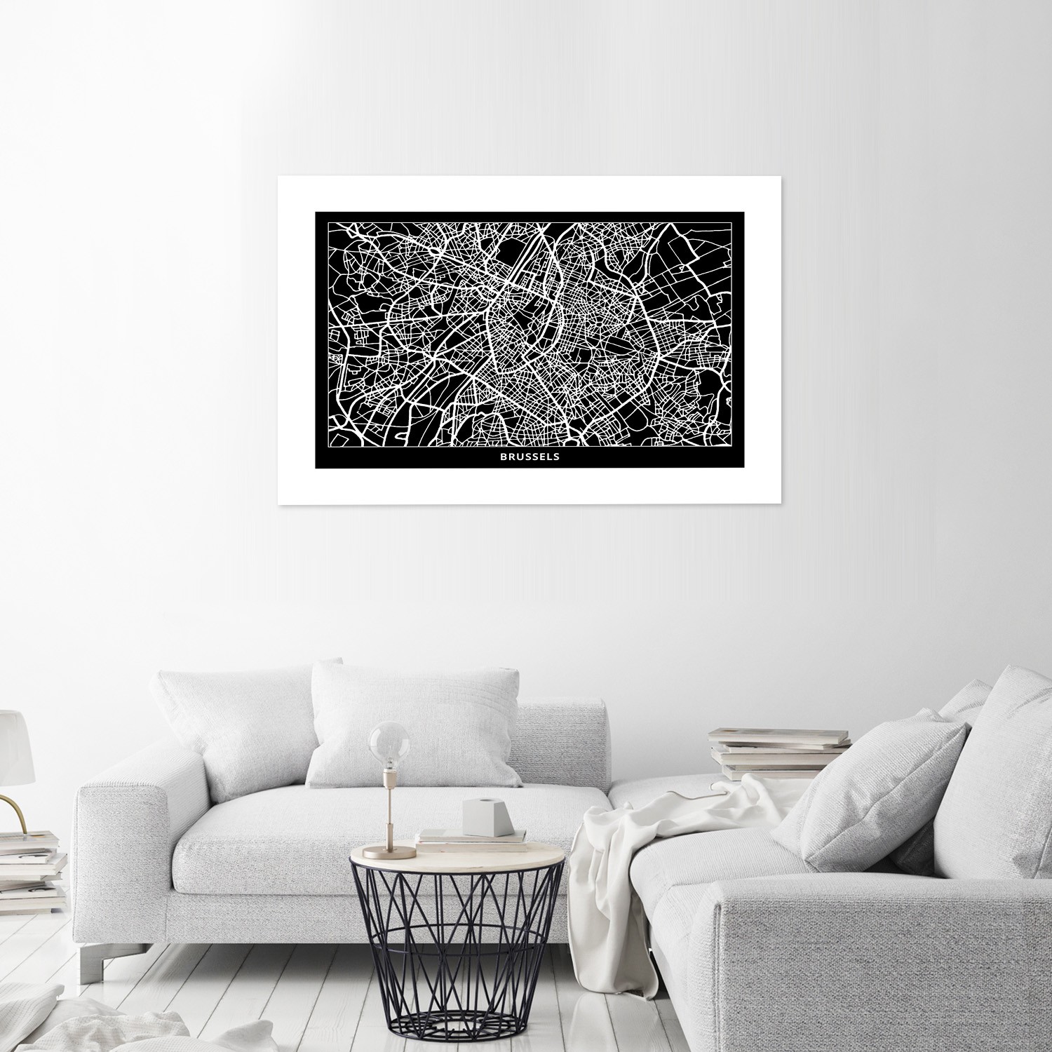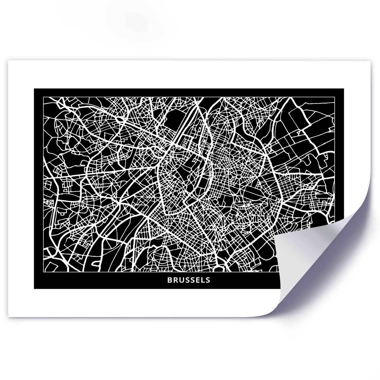 Poster avec image d'un plan de la ville de bruxelles imprimé sur papier satiné noir et blanc