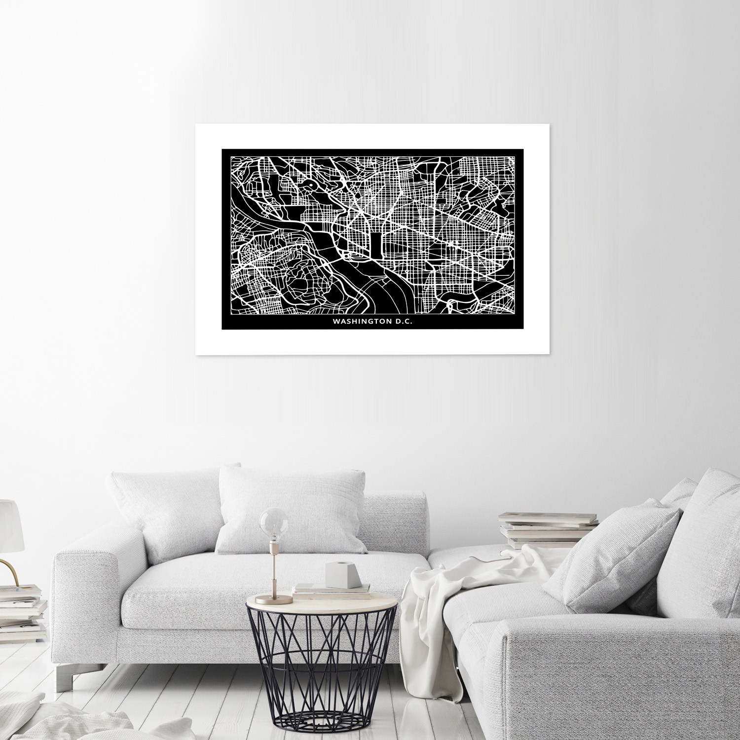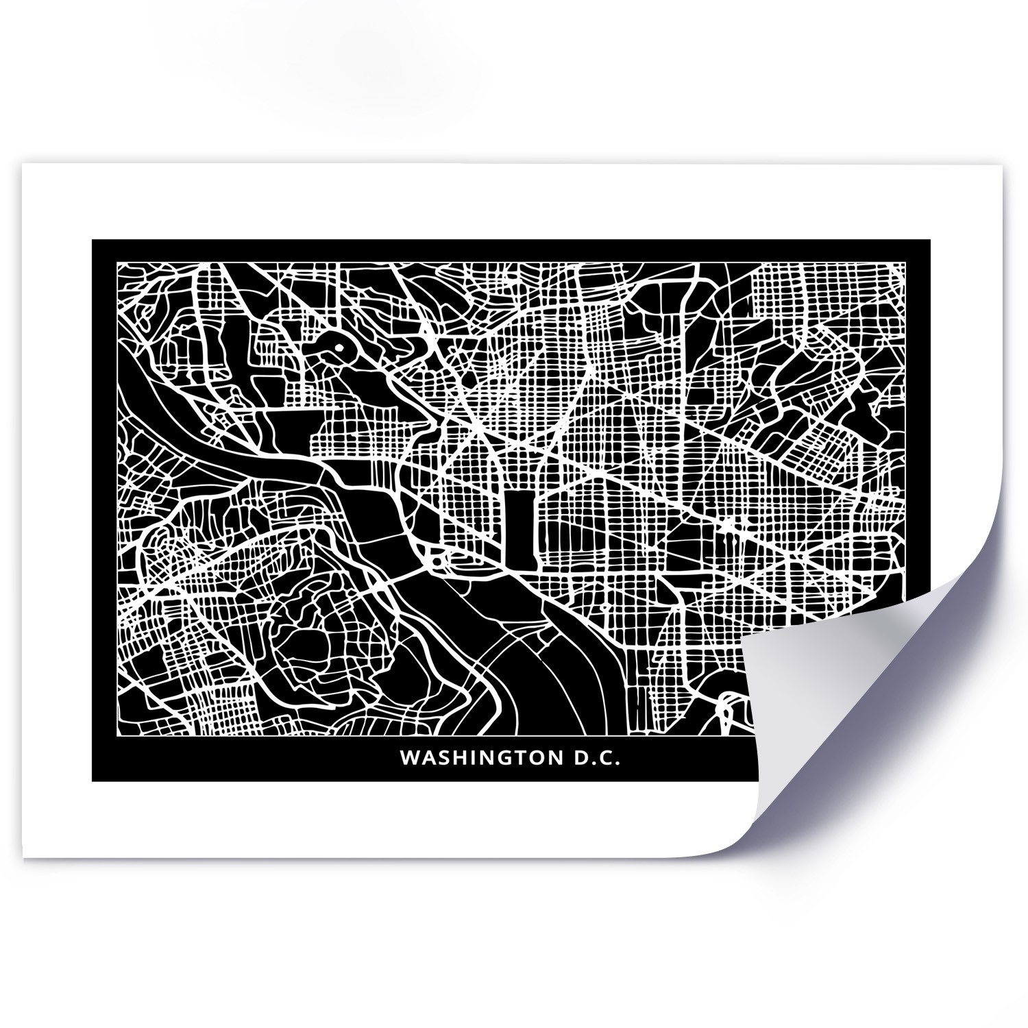 Informations sur le produit "Poster mural avec image d'une carte de washington finition noir et blanc"