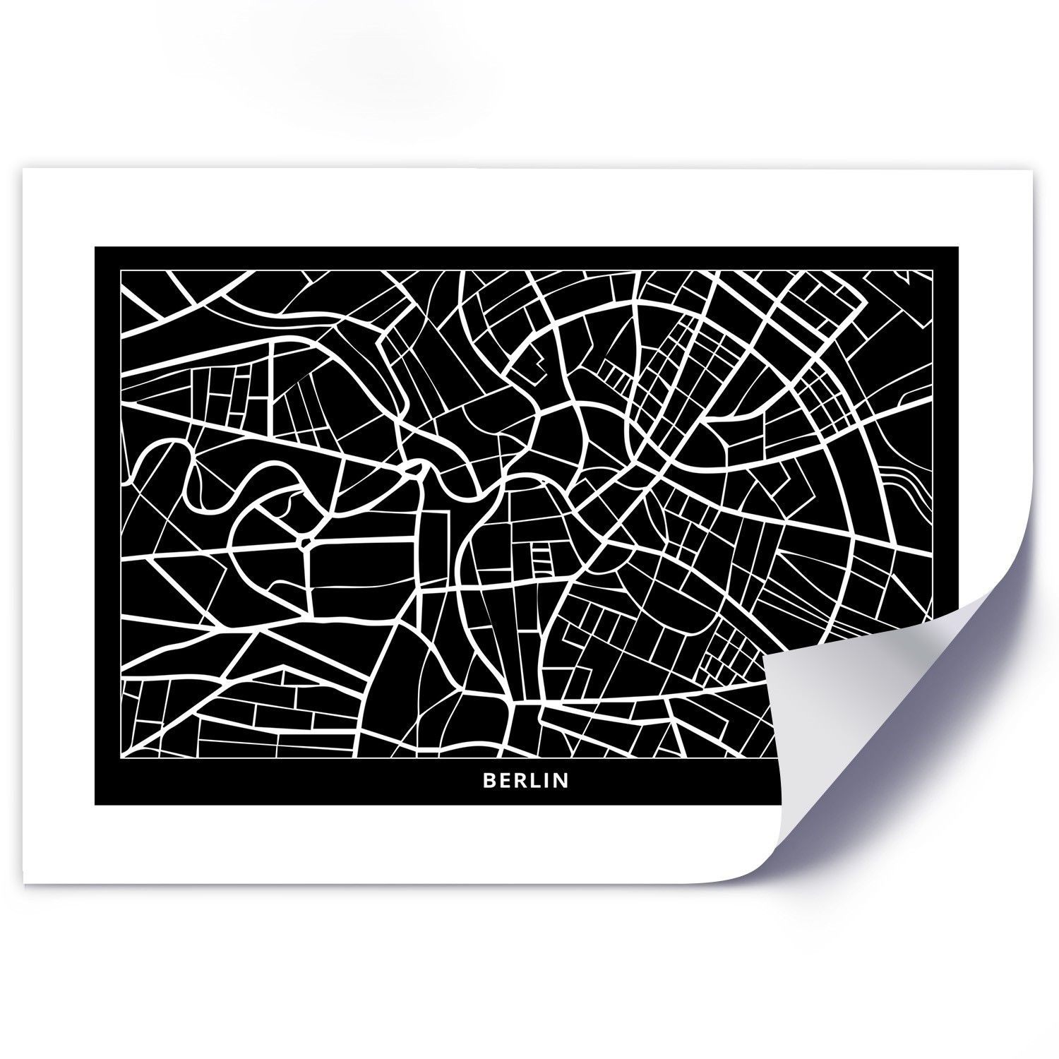 Informations sur le produit "Poster mural en papier avec image d'une carte de berlin couleur noir et blanc"