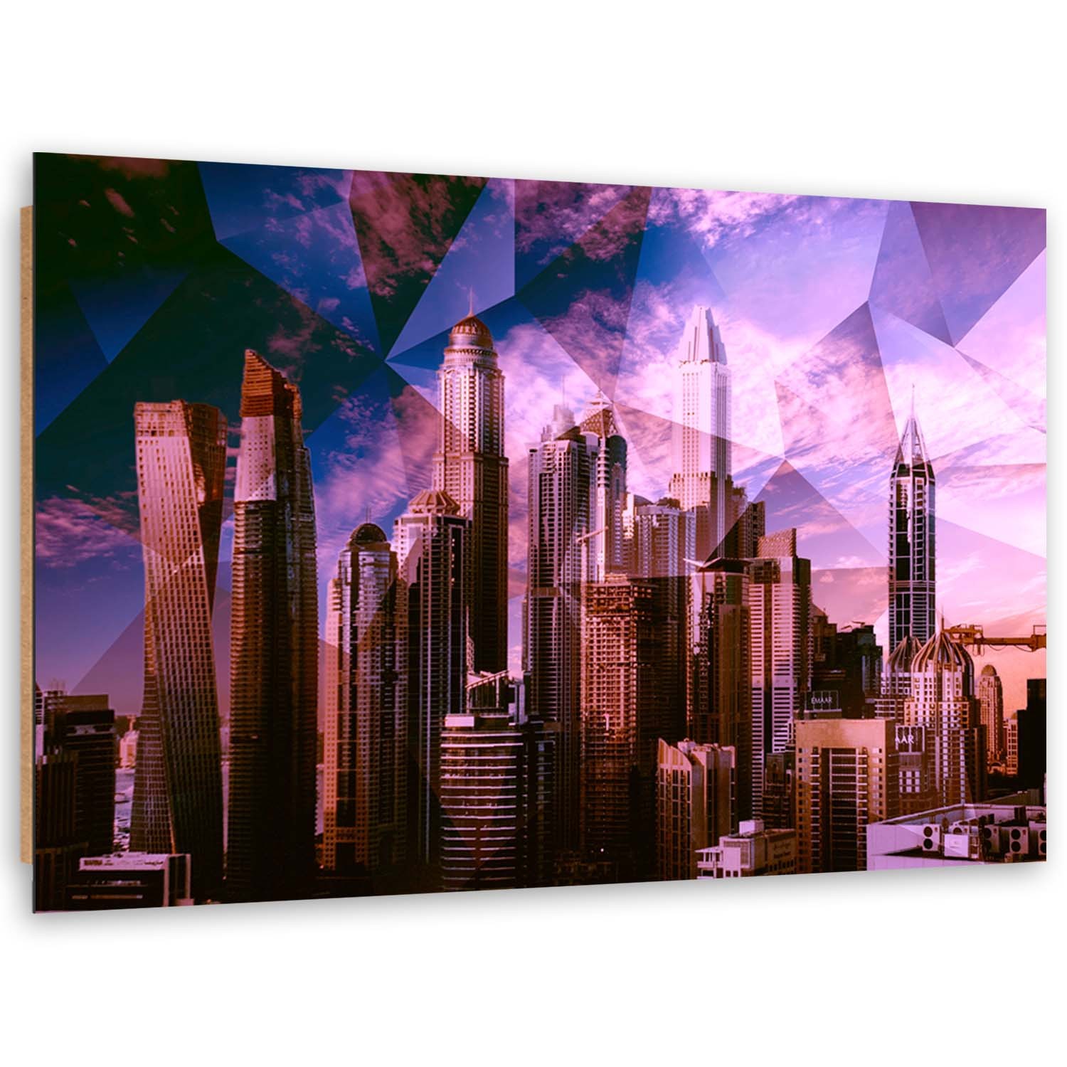 Description et caractéristiques - Cadre à suspendre en MDF imprimé sur toile d'une seule pièce ville abstraite couleur violette