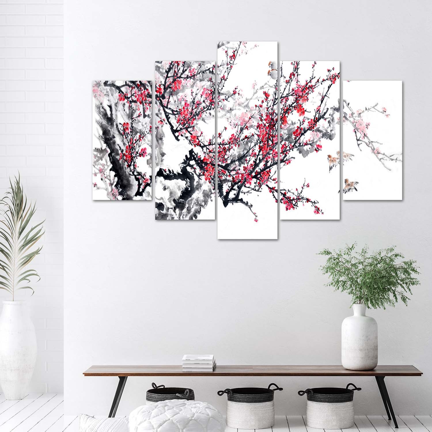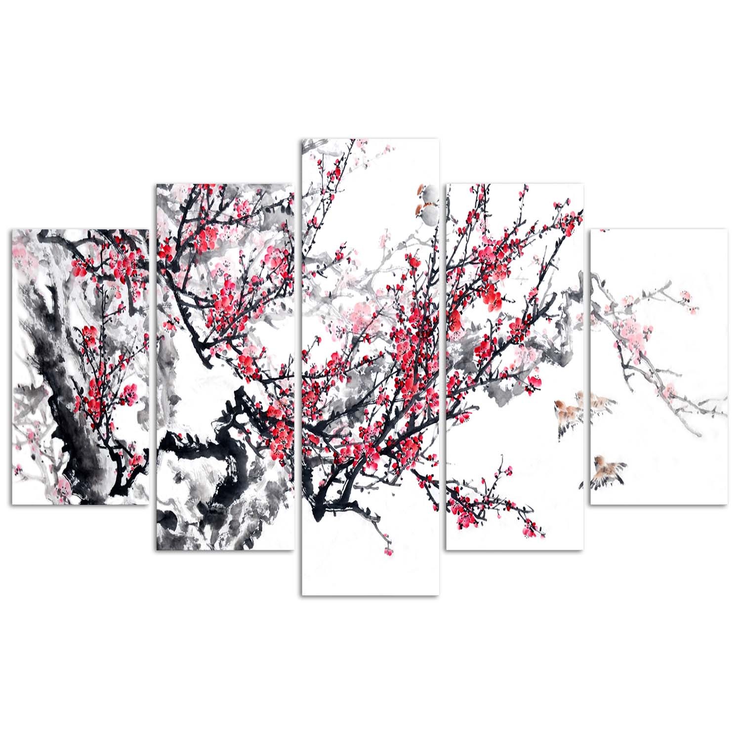 - Cadre composé de cinq pièces « cerisier japonais » imprimé sur toile en MDF (fibre de densité moyenne).