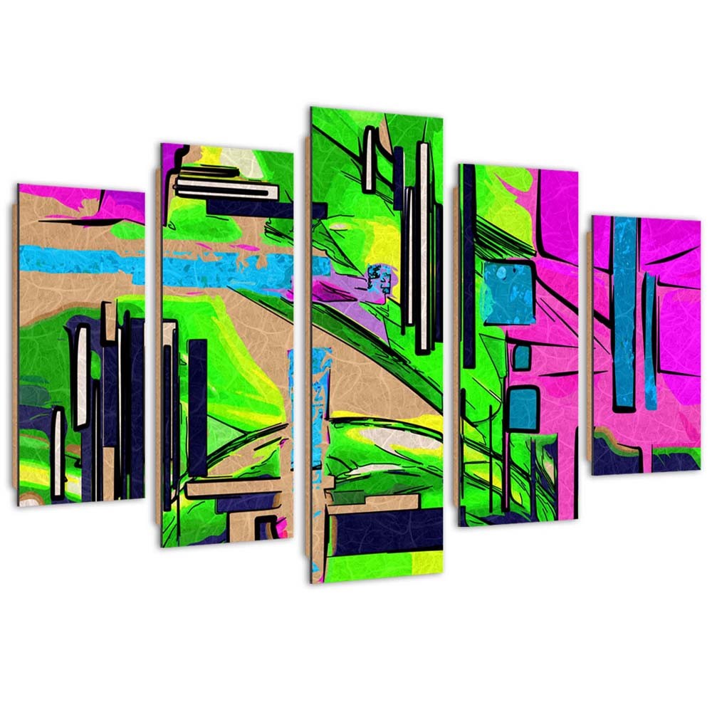 Informations sur le produit "Cadre composé de cinq panneaux imprimés sur papier avec image abstraite de paysage multicolore"