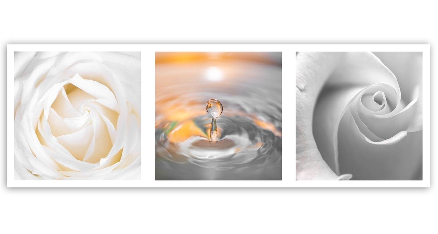 - Cadre composé de trois parties « pétales et goutte d'eau » imprimé sur toile en MDF (fibre de densité moyenne).