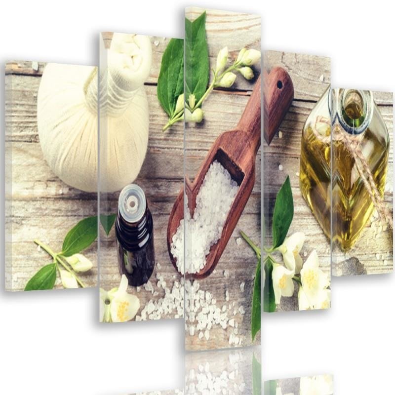- Cadre composé de cinq pièces « condiments et jasmin » imprimé sur toile en MDF (fibre de densité moyenne).