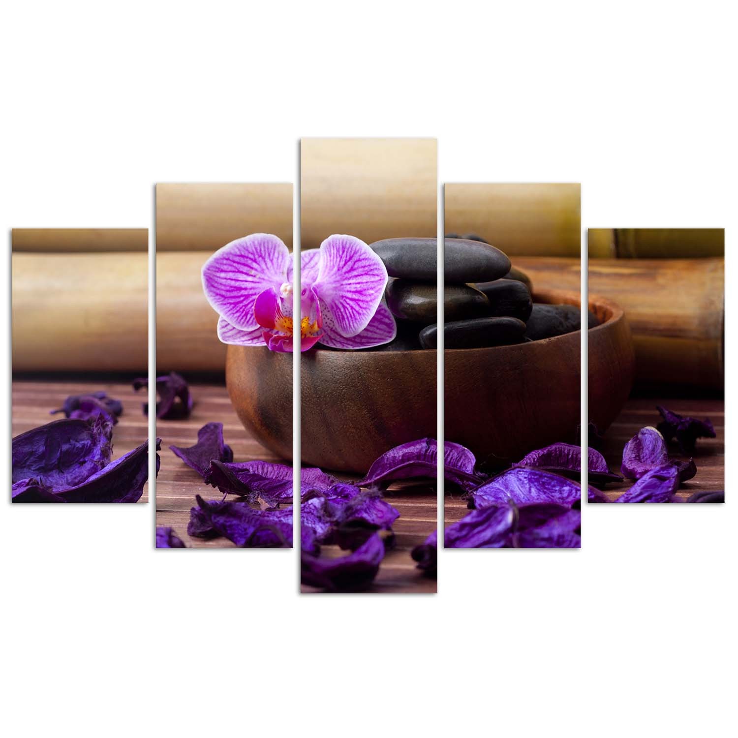 - Cadre composé de cinq pièces « composition zen avec orchidée » imprimé sur toile en MDF (fibre de densité moyenne).