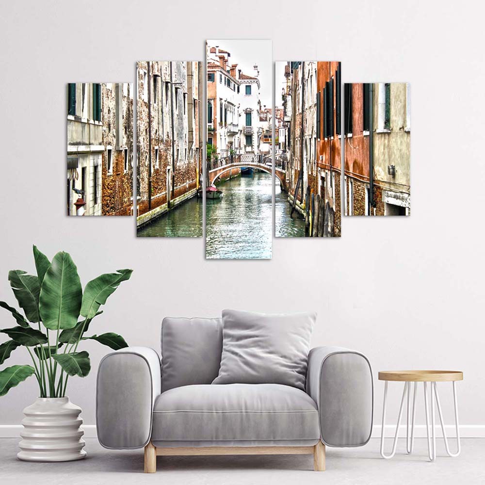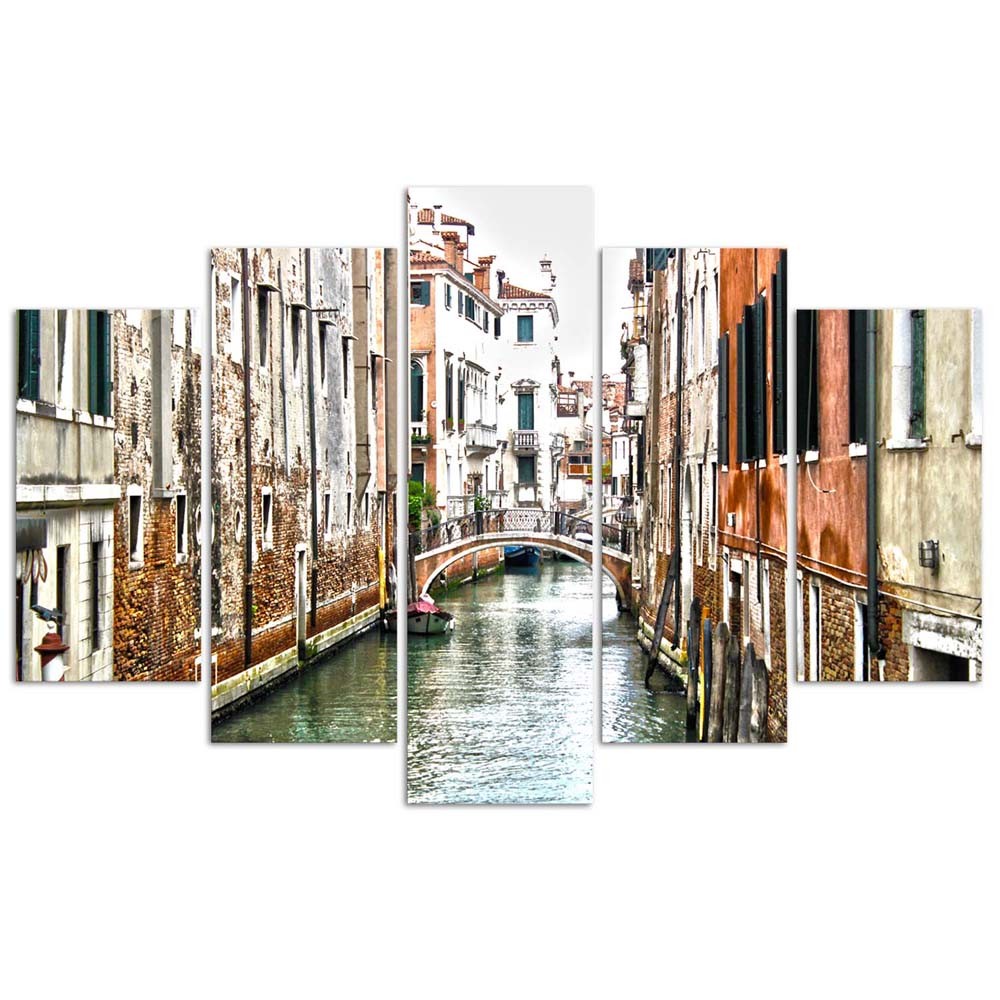 - Cadre composé de cinq pièces « Venise » imprimé sur toile en HDF (fibre de haute densité).