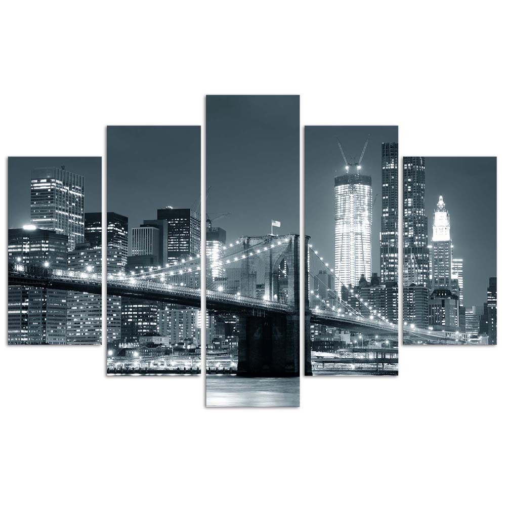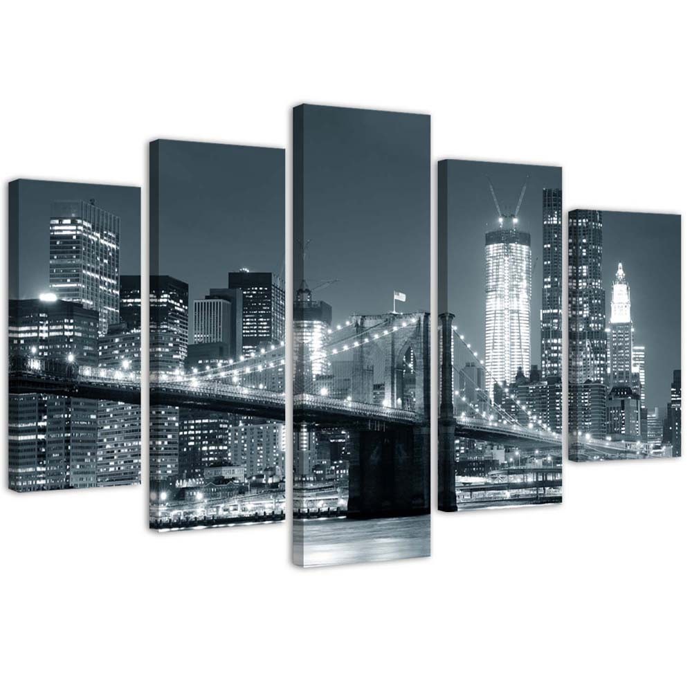 - Cadre composé de cinq pièces « Brooklyn en noir et blanc » imprimé sur toile en MDF (fibre de densité moyenne).