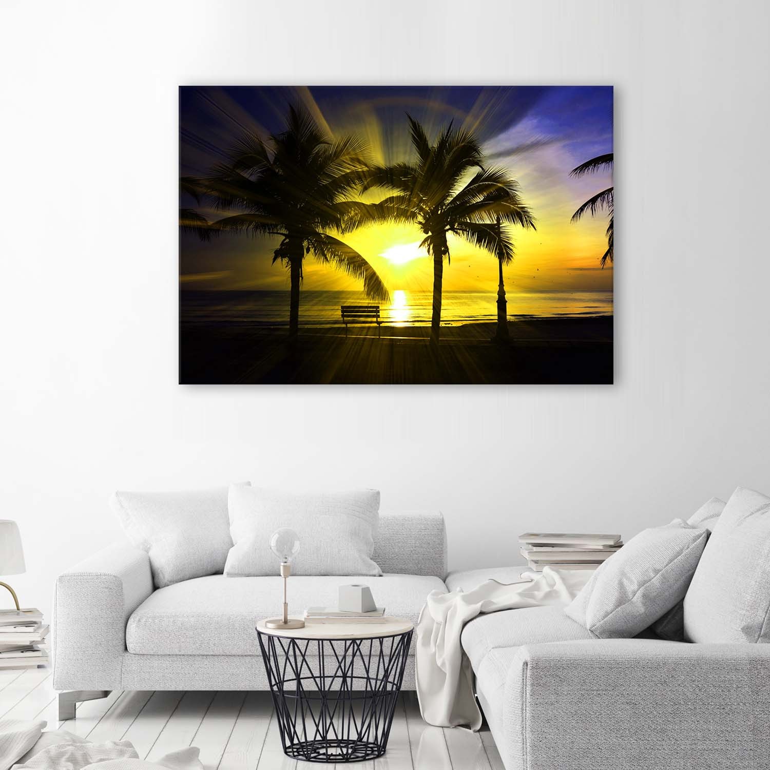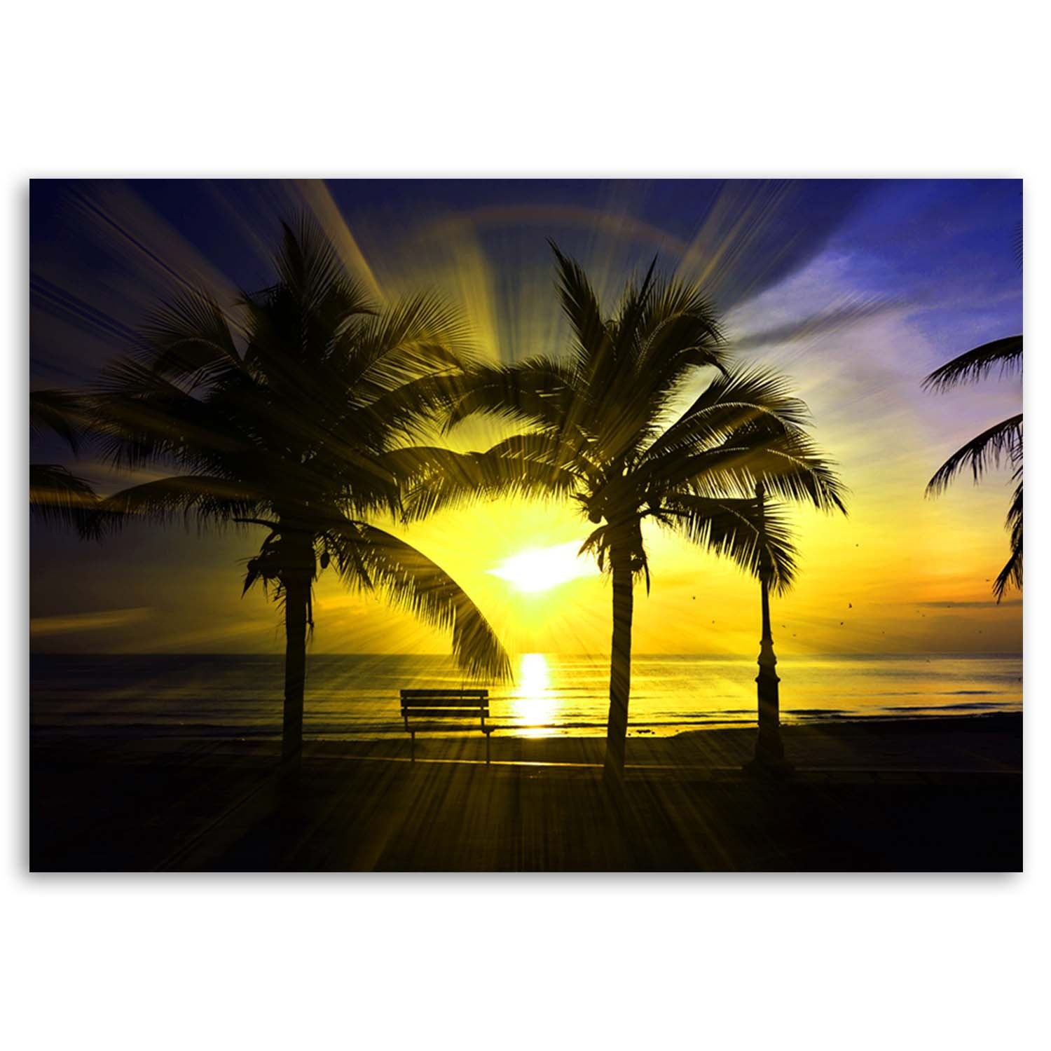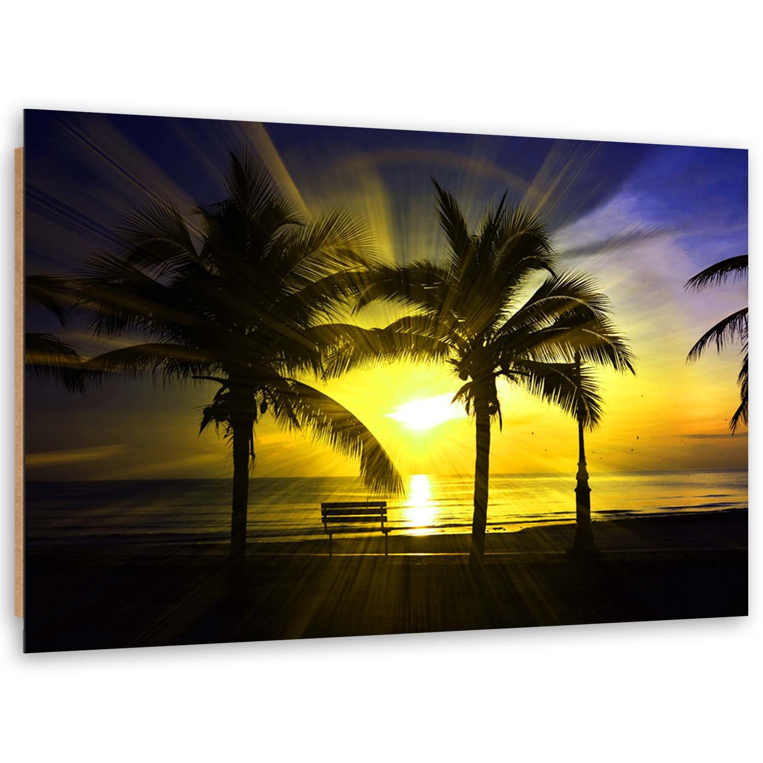 Cadre décoratif avec image de palmiers et soleil imprimée sur papier satiné avec finition jaune
