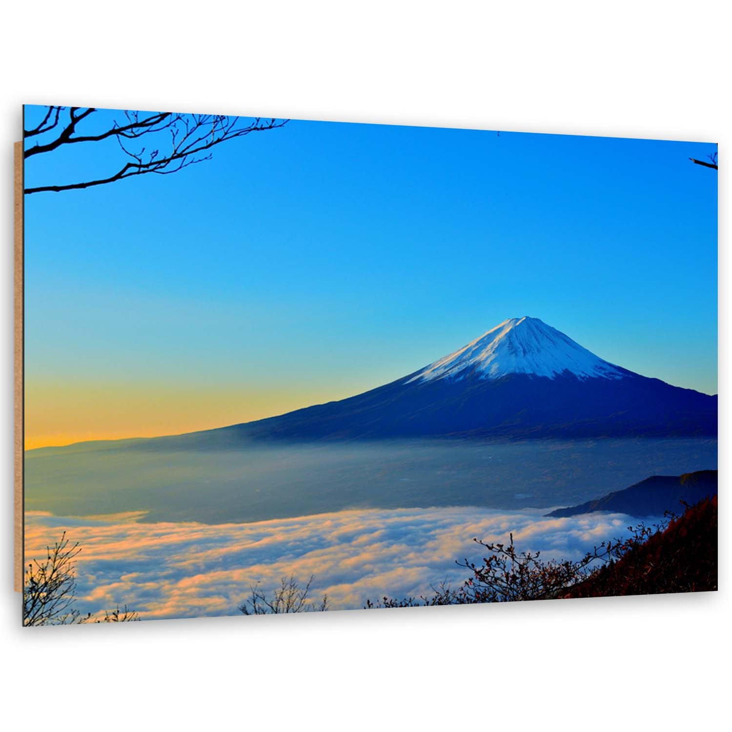 Cadre décoratif en hdf avec image du mont fuji imprimée sur papier satiné finition bleue