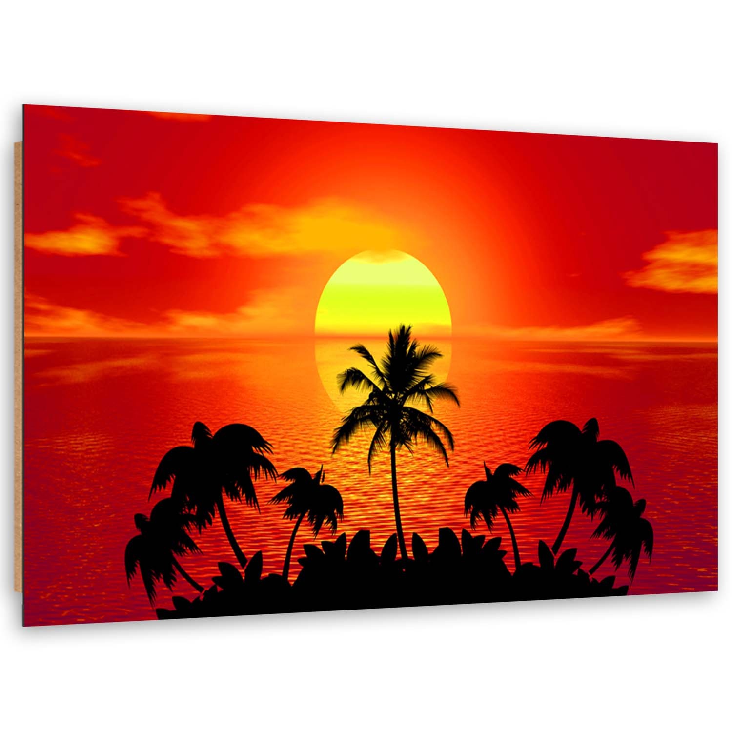 Cadre décoratif en mdf avec image de coucher du soleil et palmiers imprimée sur papier satiné avec finition rouge
