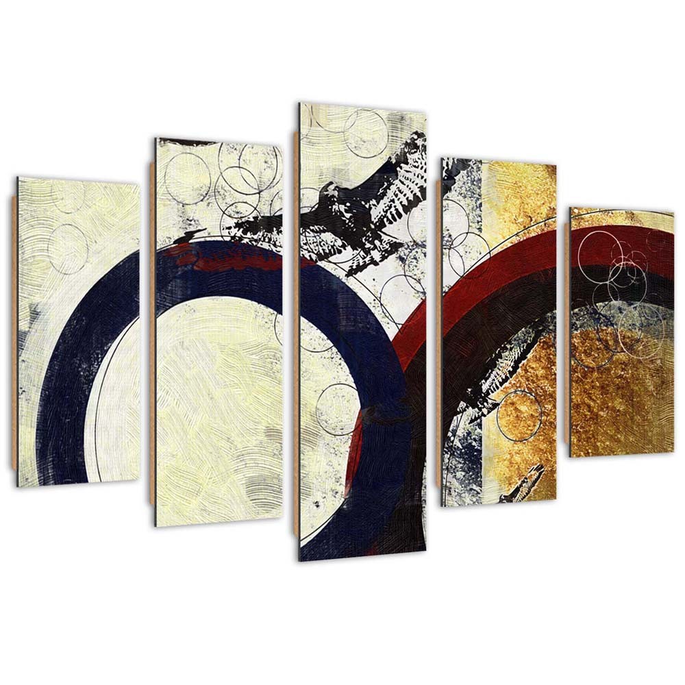 Cadre en mdf composé de cinq panneaux imprimés avec dessin de cercles foncés