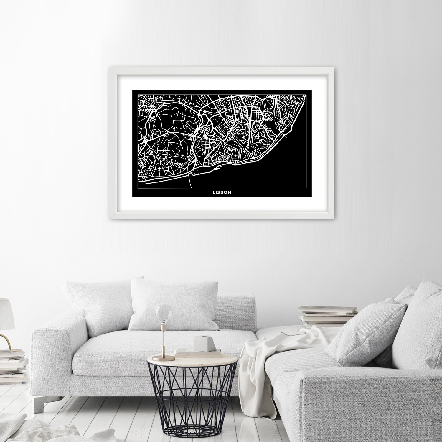Cadre en mdf imprimé sur papier satiné avec finition de couleur noir et blanc lisbonne