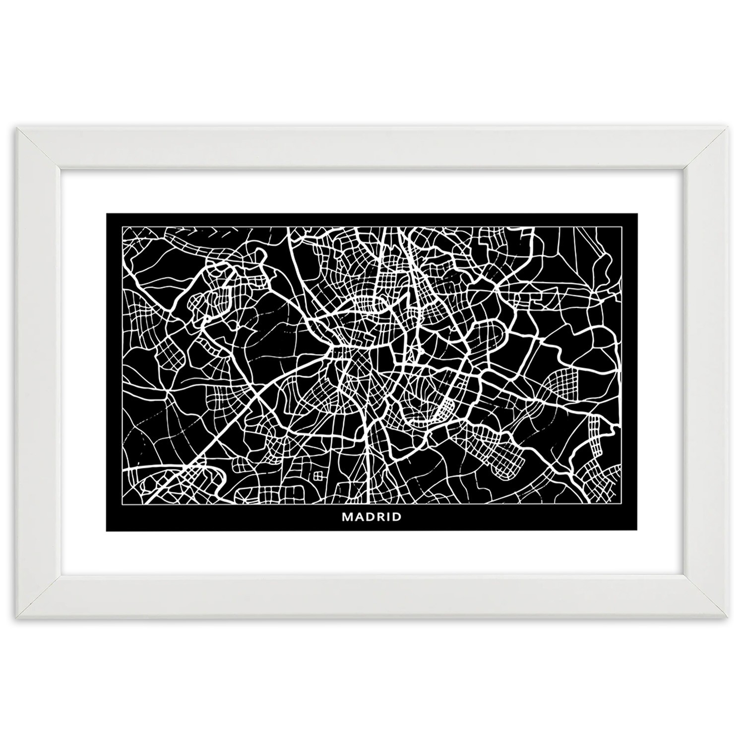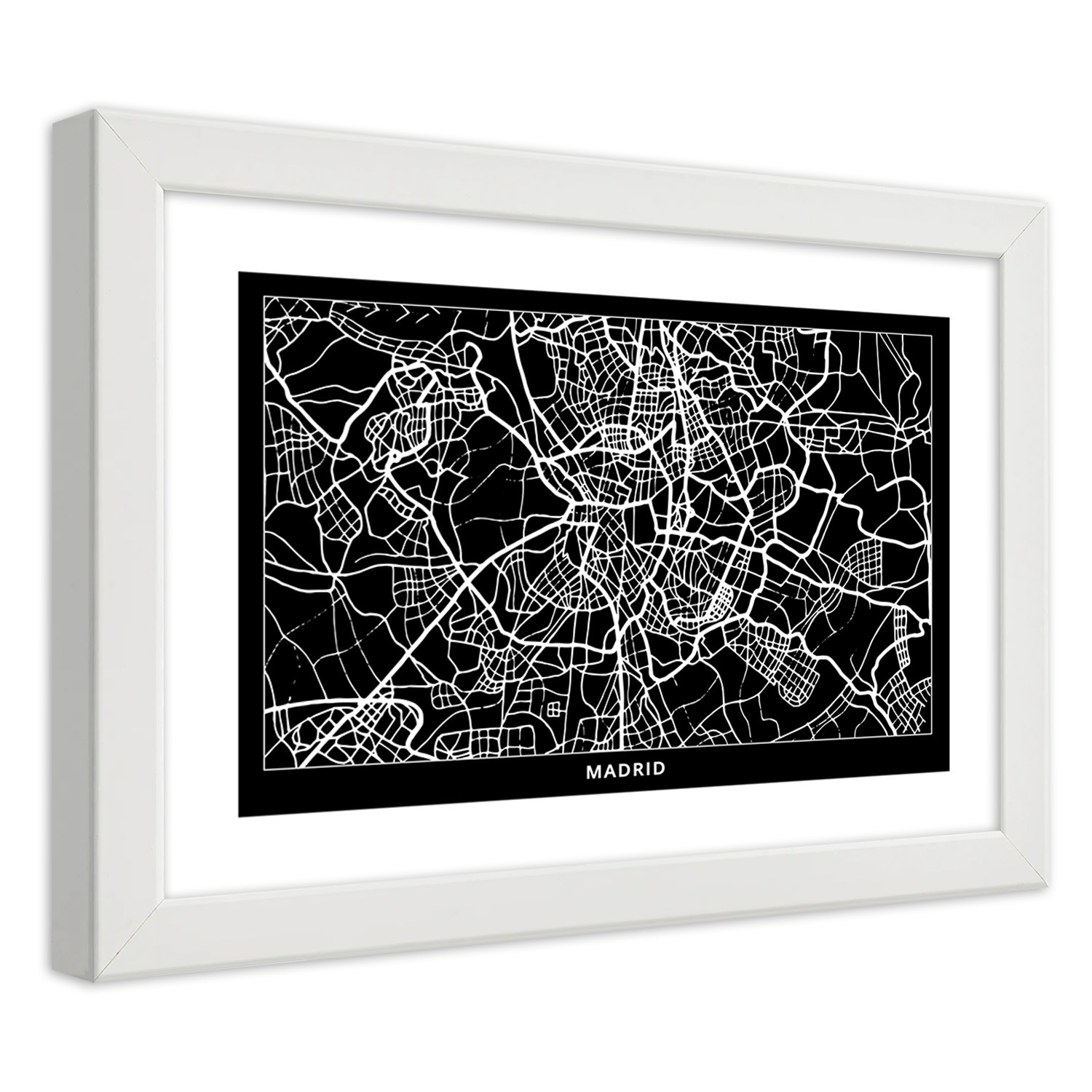 Cadre en mdf imprimé sur papier satiné avec finition de couleur noir et blanc madrid