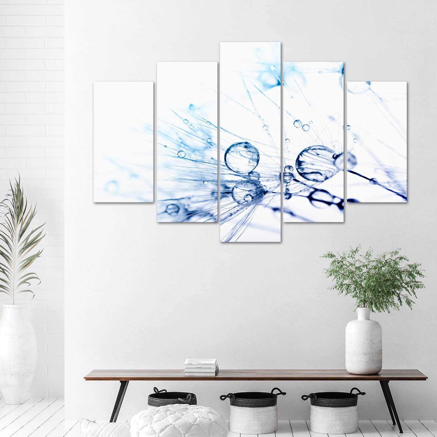 - Cadre composé de cinq pièces « gouttes d'eau » imprimé sur toile en MDF (fibre de densité moyenne).
