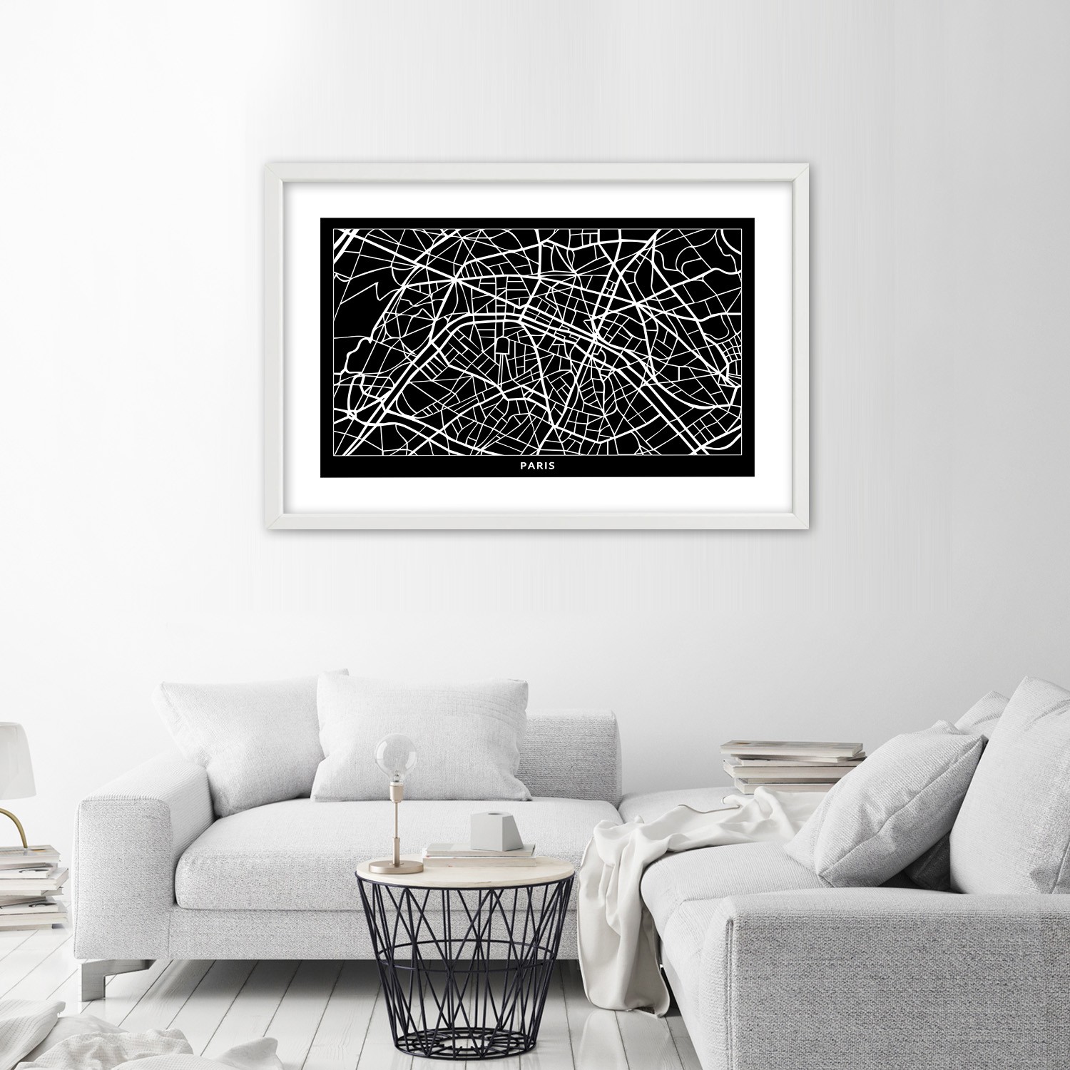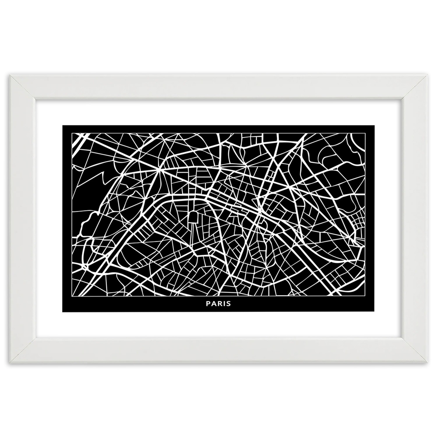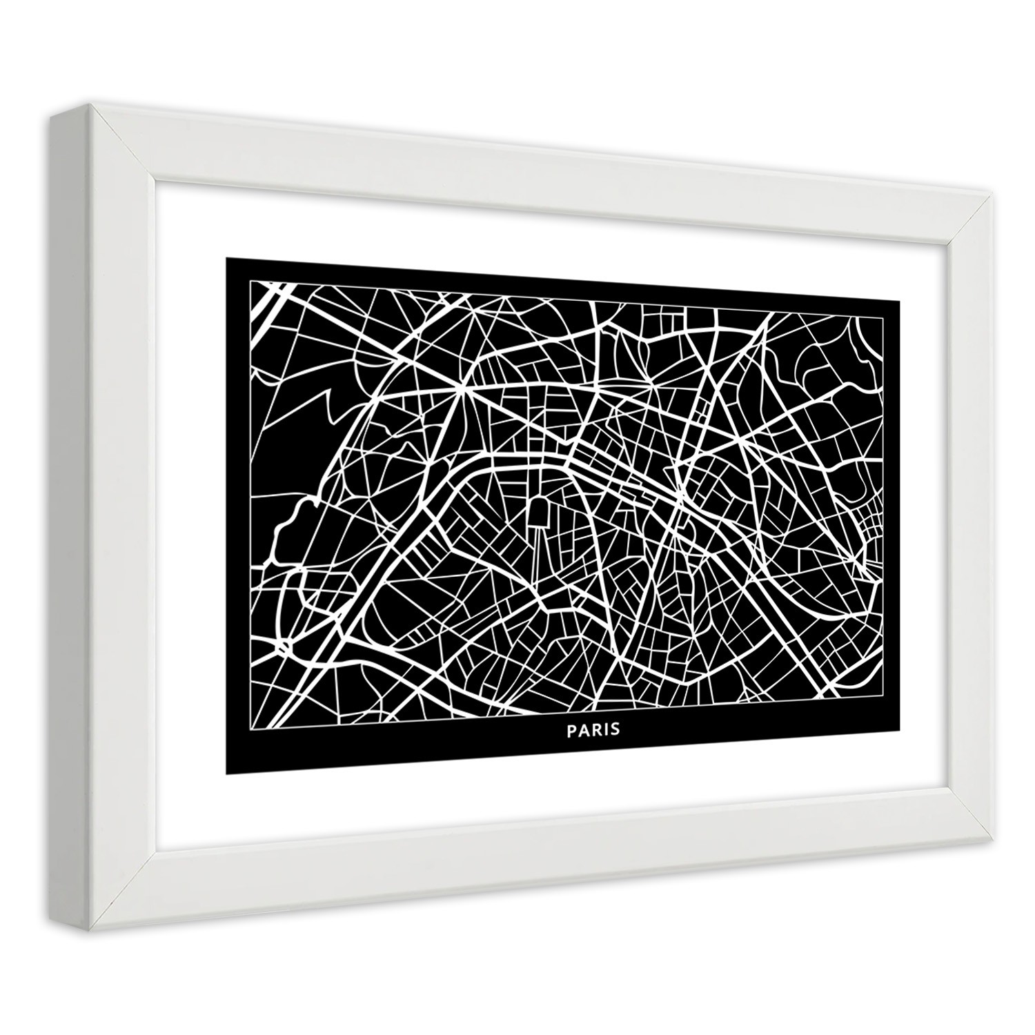 Informations sur le produit "Cadre imprimé sur papier satiné avec cadre en bois plan de la ville de paris"