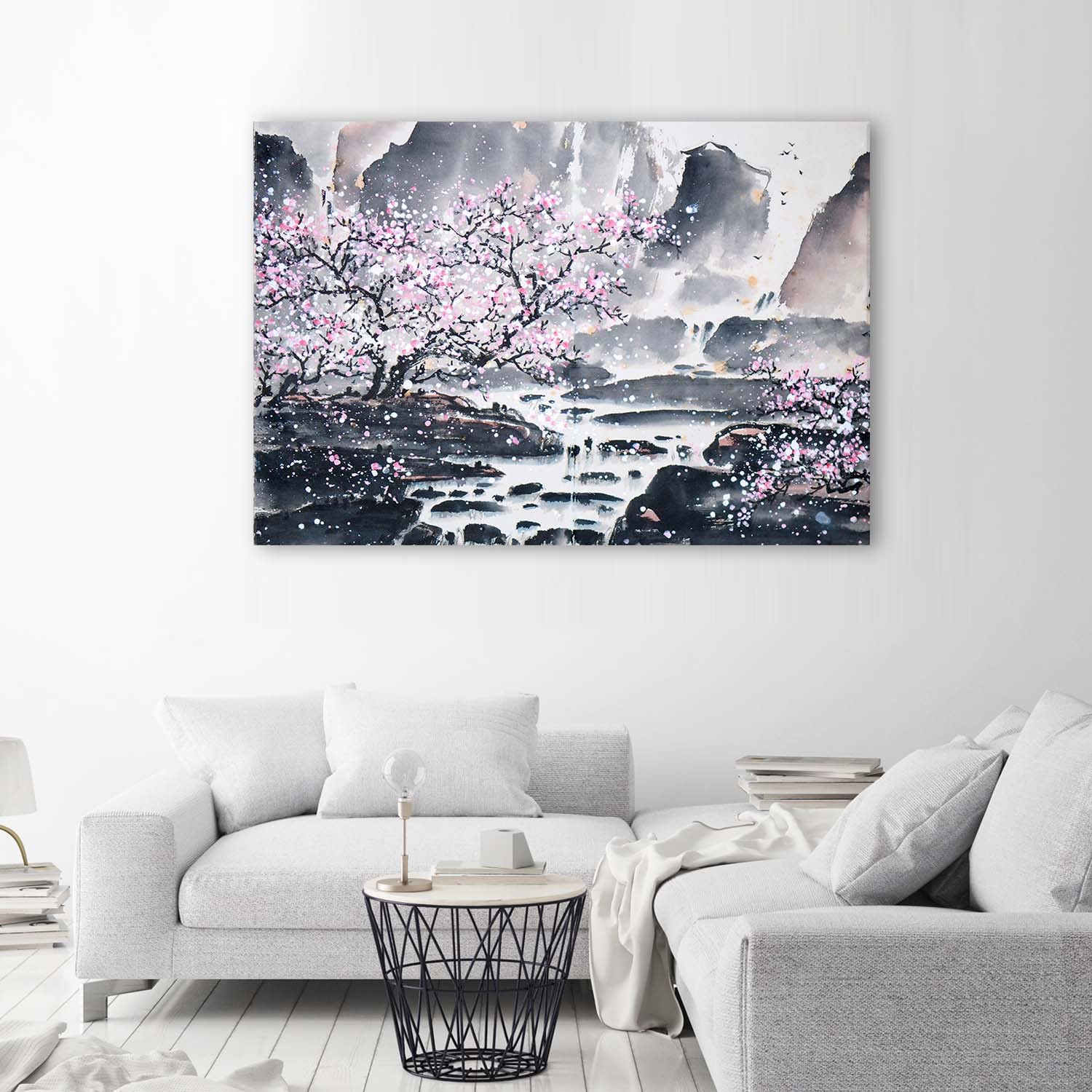 - Cadre imprimé sur toile avec image d'aquarelle japonaise.