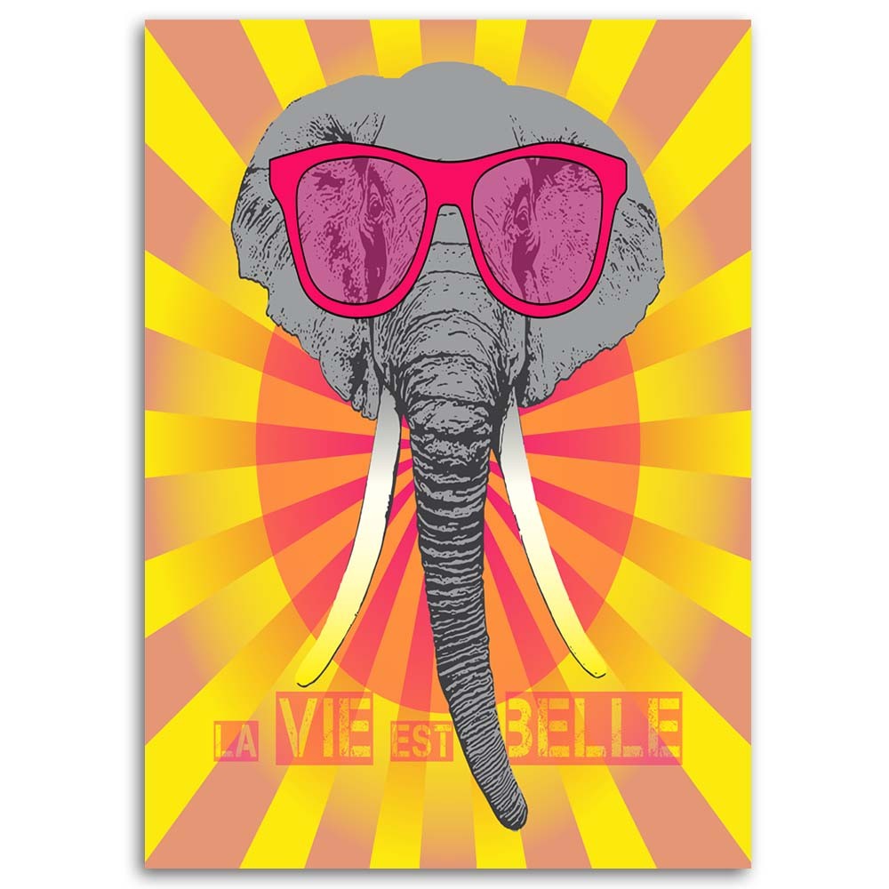 Cadre imprimé sur toile avec image d'éléphant avec des lunettes fabriqué en mdf