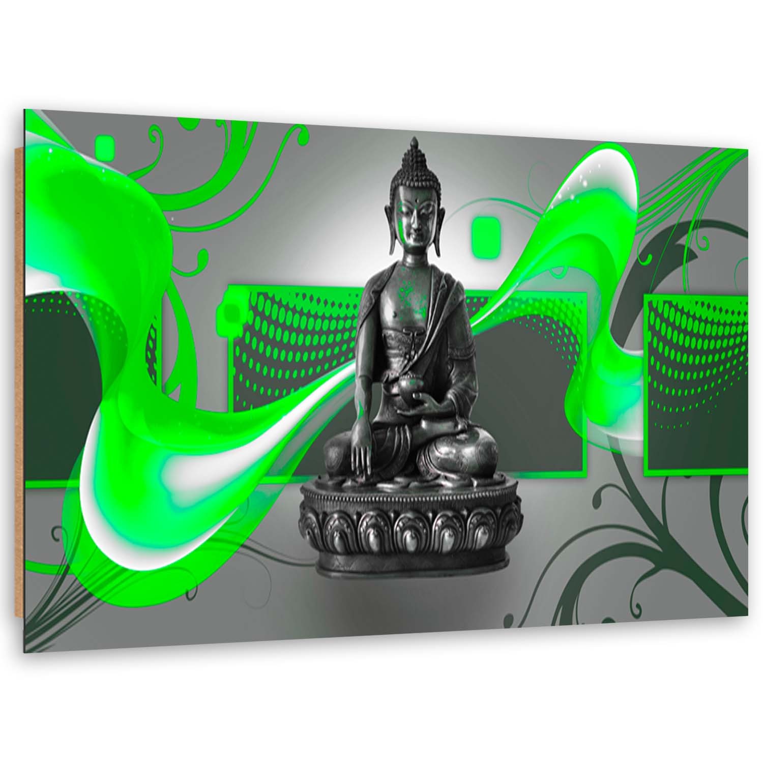 Cadre imprimé sur toile avec image de bouddha sur fond abstrait vert fabriqué en mdf
