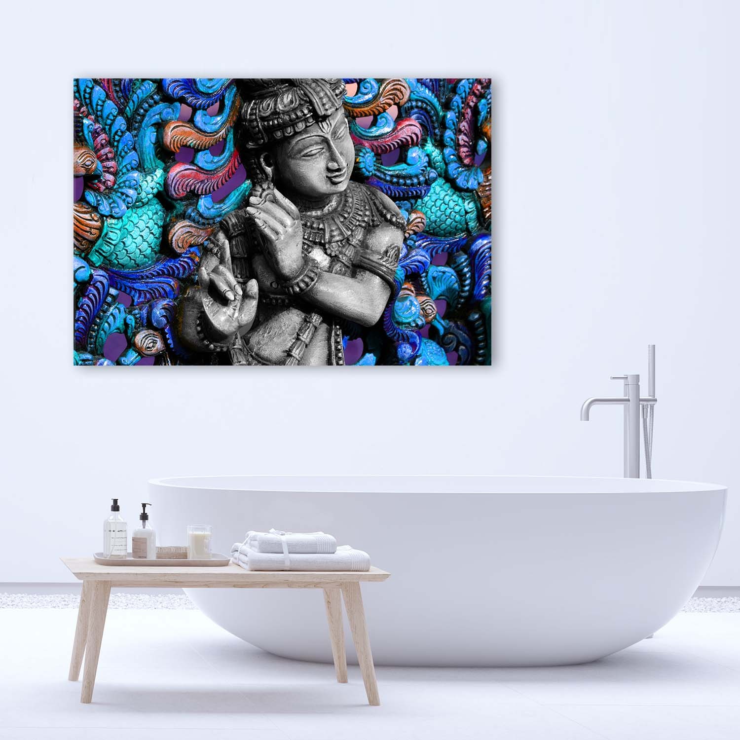 Informations sur le produit "Cadre imprimé sur toile avec image de bouddha sur fond de mosaïque fabriqué en mdf et toile"