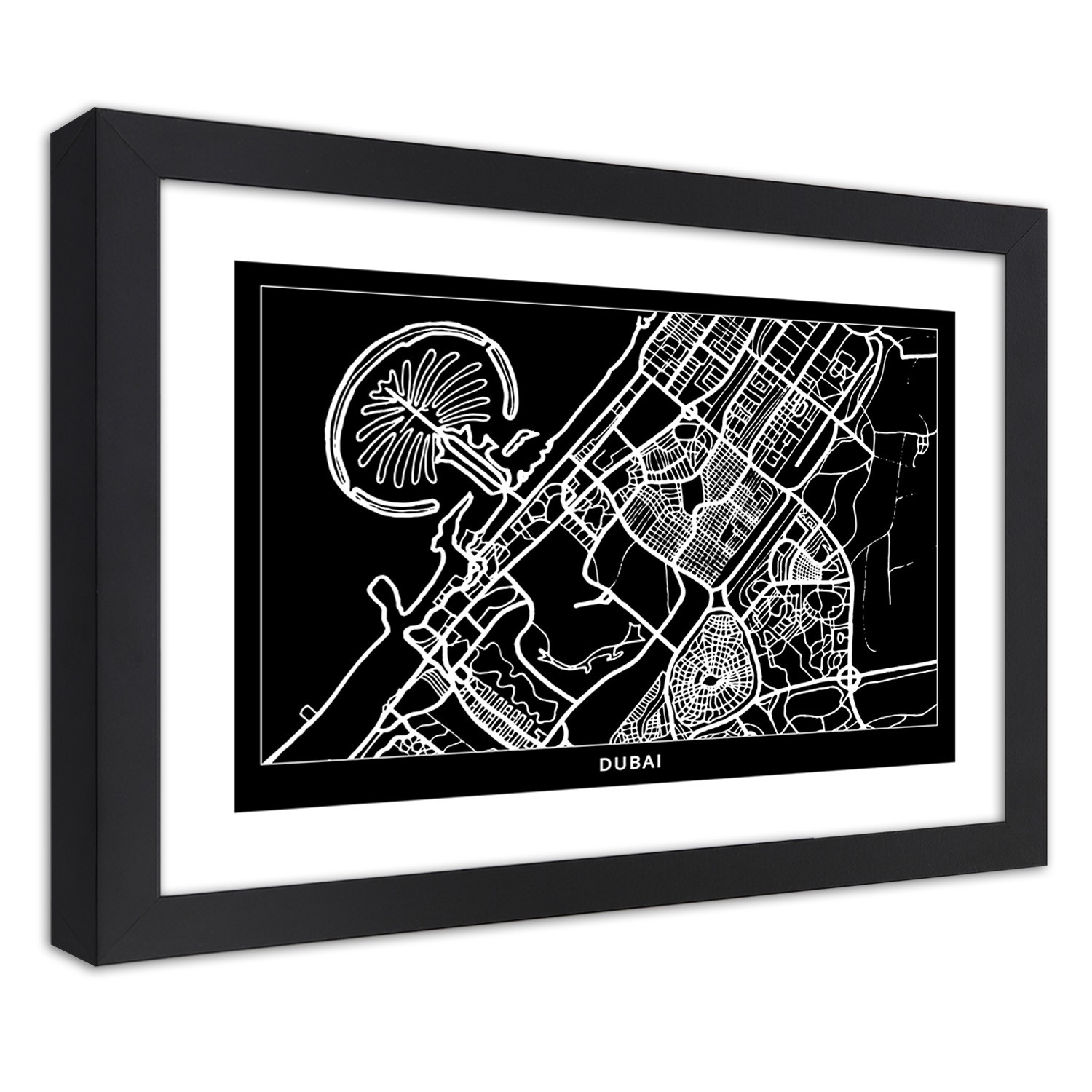 Informations sur le produit "Cadre noir en mdf plaqué avec poster carte de la ville de dubaï"