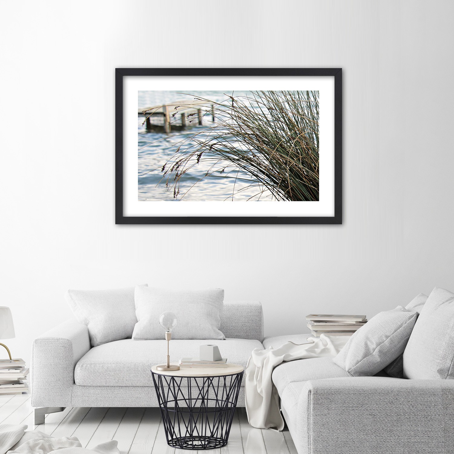 Informations sur le produit "Cadre noir en mdf plaqué avec poster décoratif ponton sur la mer"