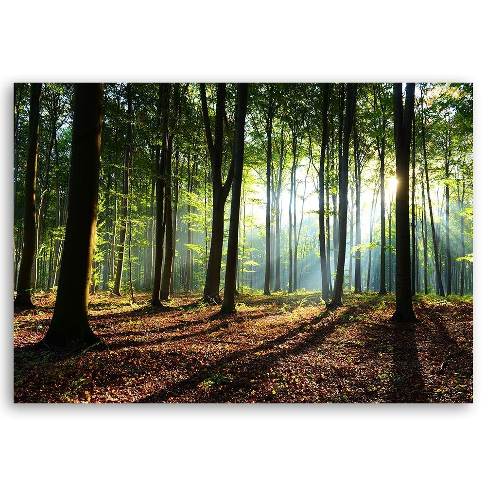 Cadre rectangulaire en mdf et toile avec image décorative d'un bois au lever du soleil