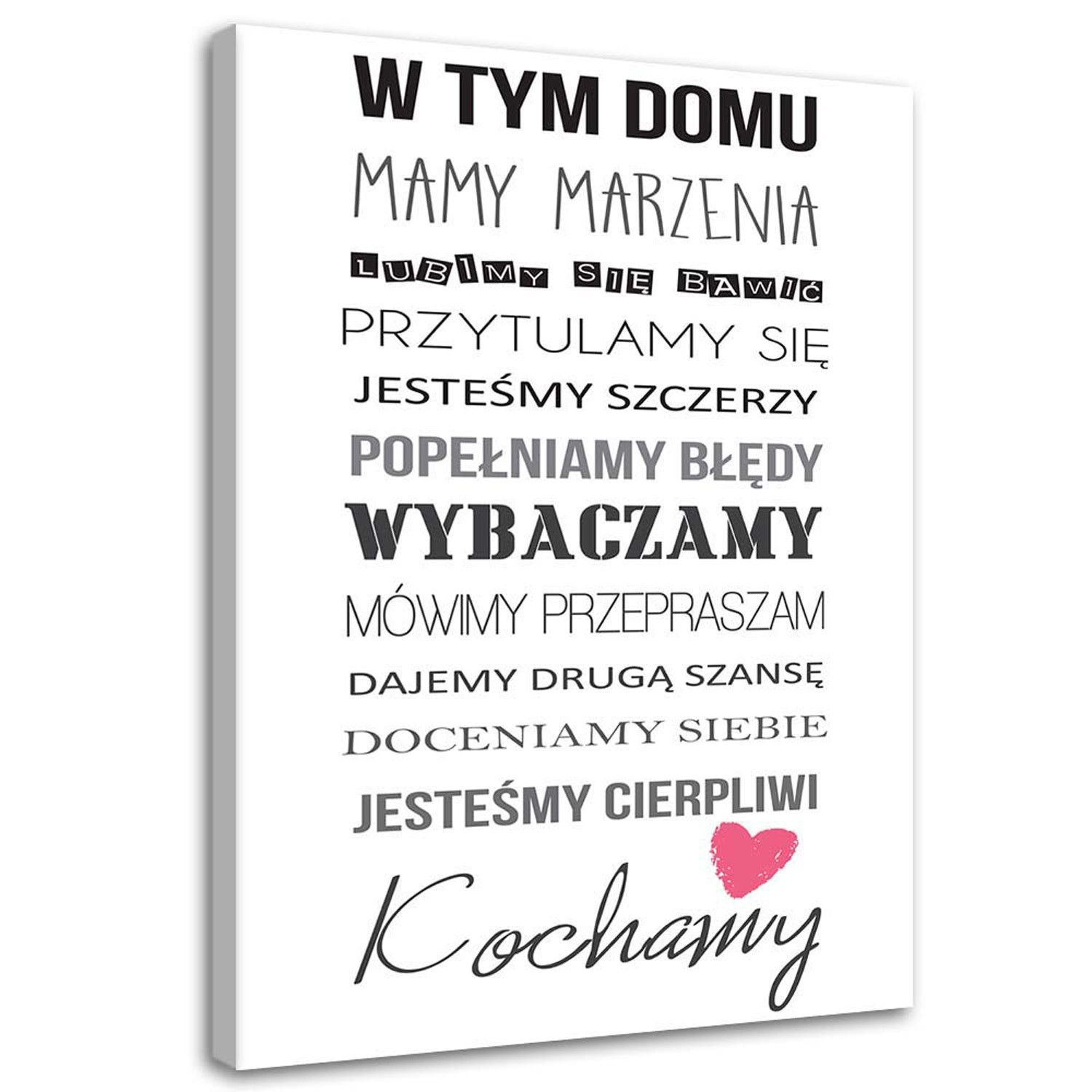Informations sur le produit "Cadre rectangulaire sur toile avec image de typographies de couleur gris et noir"