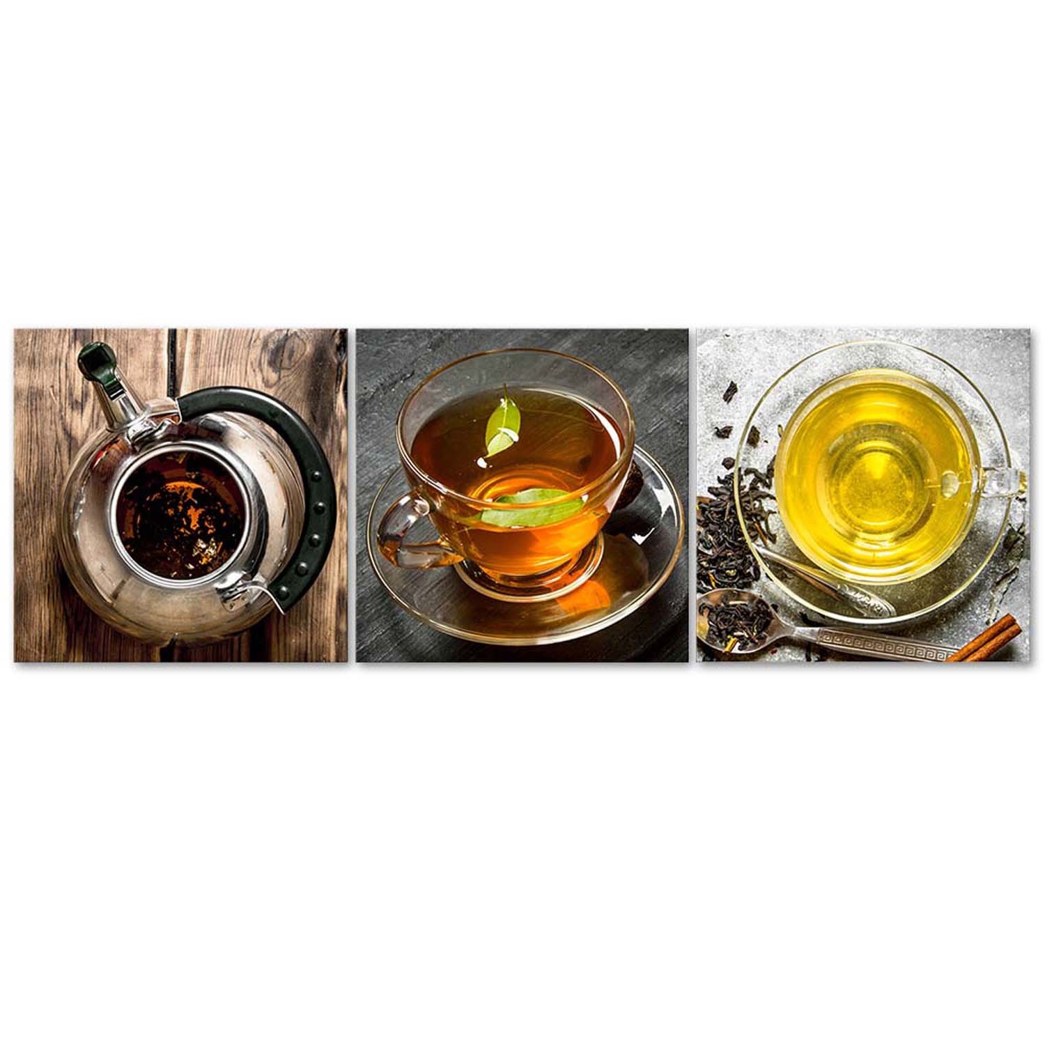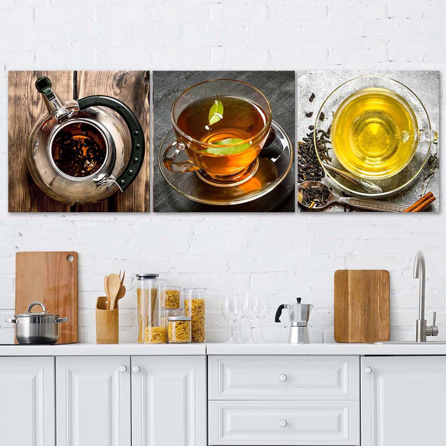 Ensemble de 3 cadres avec image de tasses de thé fabriqué en mdf et toile