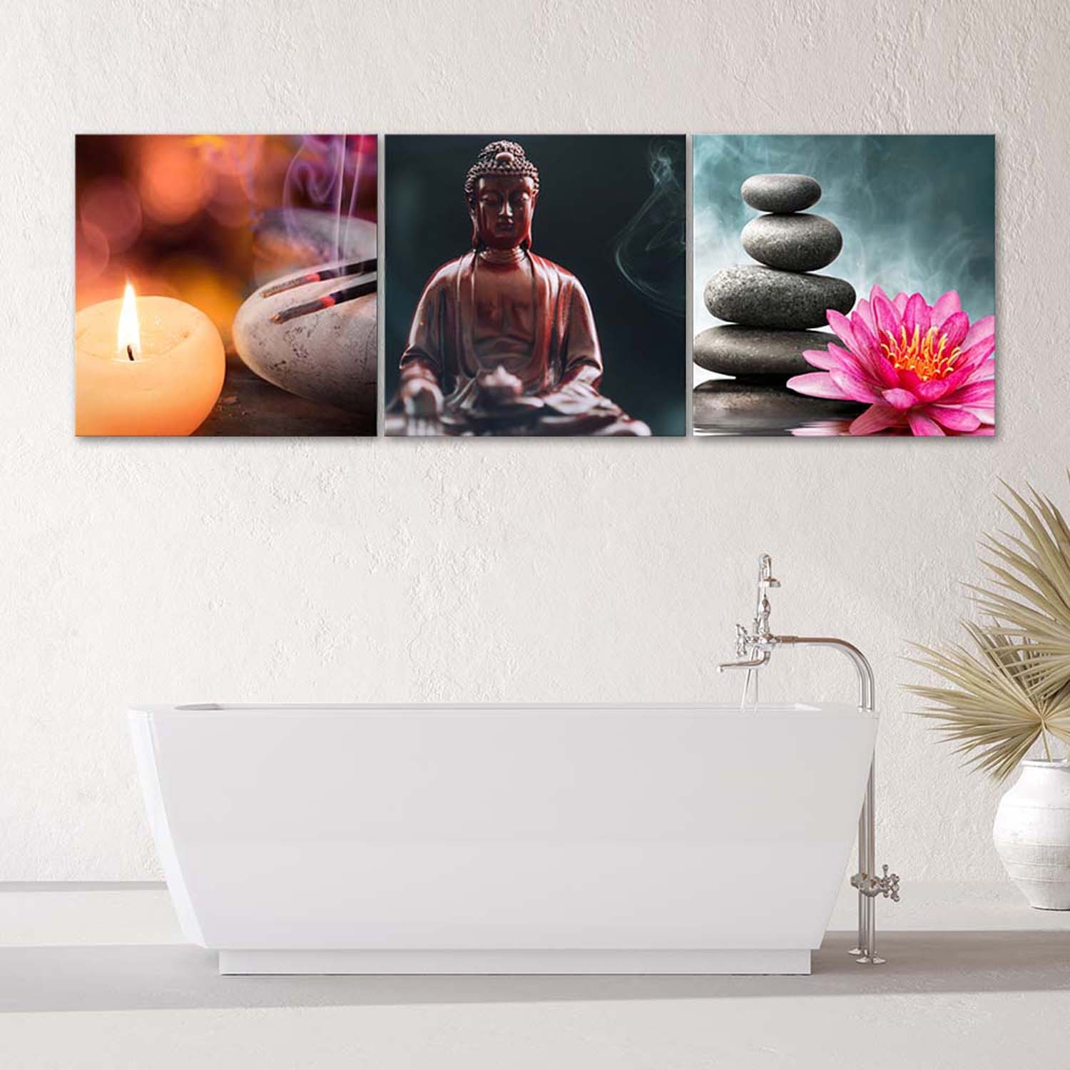 Informations sur le produit "Ensemble de cadres décoratifs panneaux en toile et mdf avec image d'encens et bouddha"