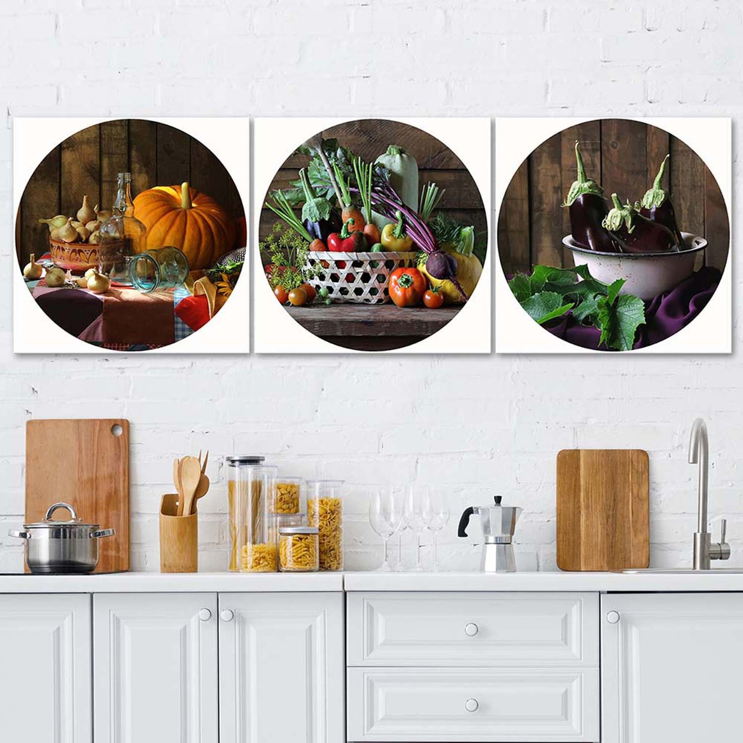 Informations sur le produit "Ensemble de cadres décoratifs panneaux en toile et mdf avec image de cuisine d'automne"